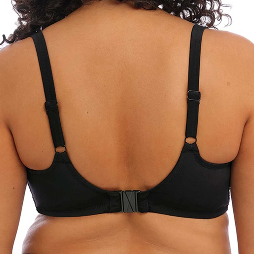 Bazaruto underwired plunge bikini top by Elomi Swim. Full cup bikini top with lower front for a plunge look. Made from a crochet fabric with strong opaque lining to fit like Elomi lingerie bras. With wide clasp opening on the back and fully adjustable straps for best support.