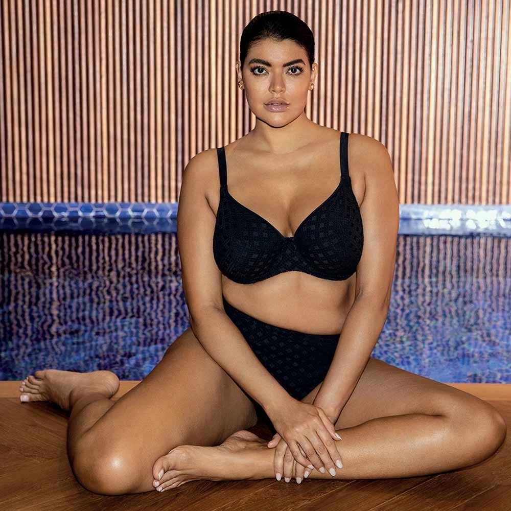Underwired non padded plunge cups, Fully lined, Fully adjustable straps, Side support inside the cups, Powernet lined wings
