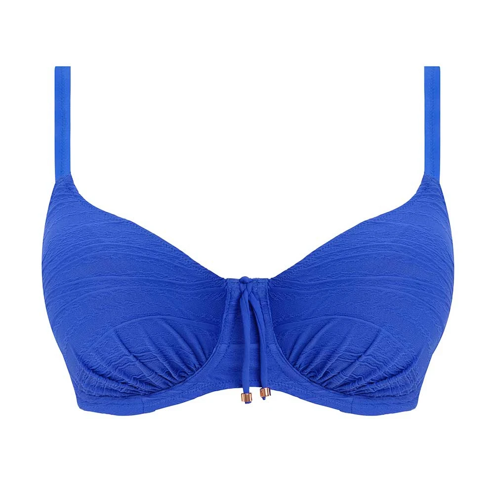 Beach Waves Underwired Full Cup Bikini Top by Fantasie Swimwear. Fully lined, full coverage ladies bikini top made from soft, textured fabric for a trendy look. With slightly gathered cups for a flattering look and concealed side support for forward projection.