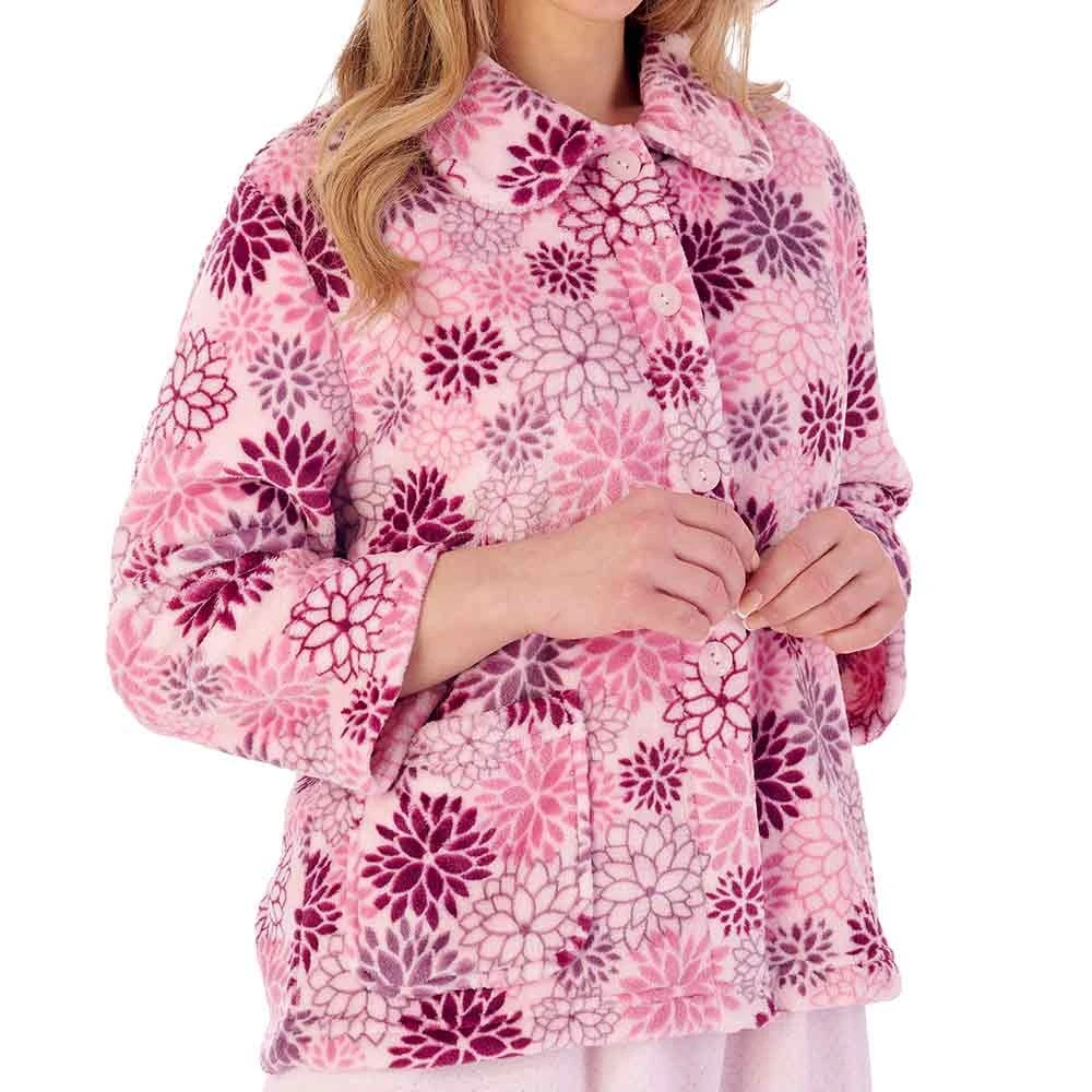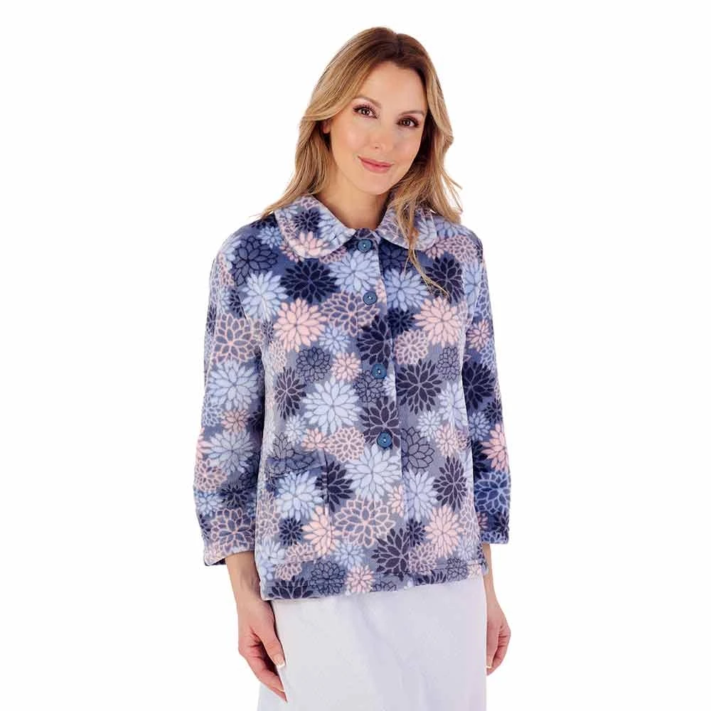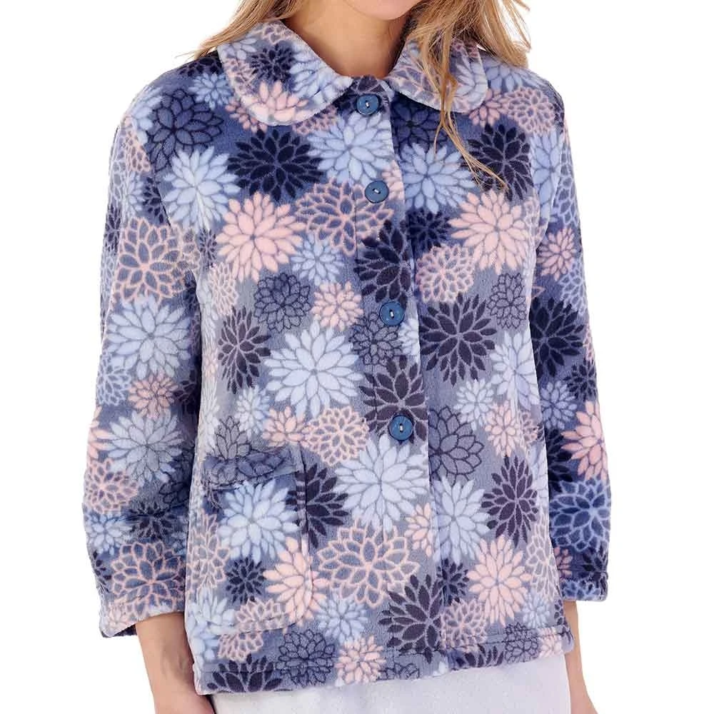 Bold Floral Flannel Fleece 3/4 Sleeve button opening Bed Jacket by Slenderella