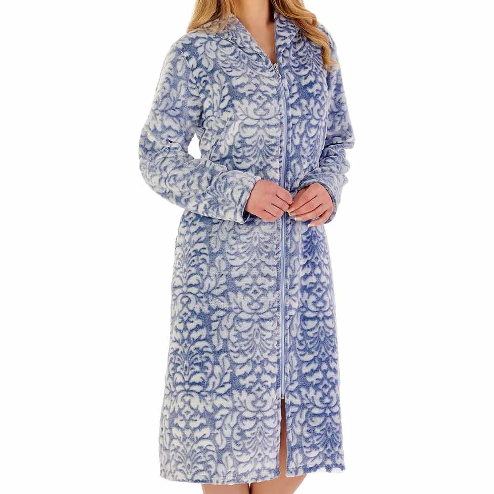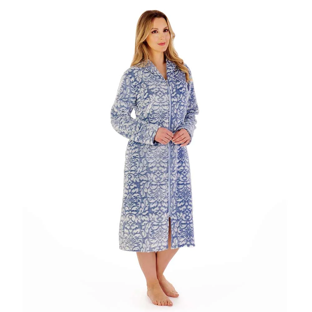 Brocade Long Sleeve Zip Opening 46 inch Housecoat by Slenderella