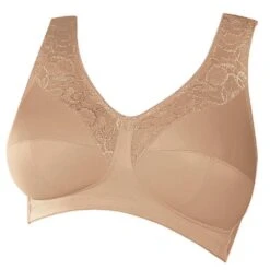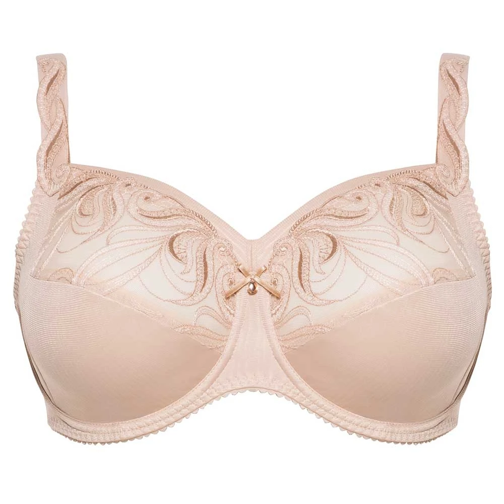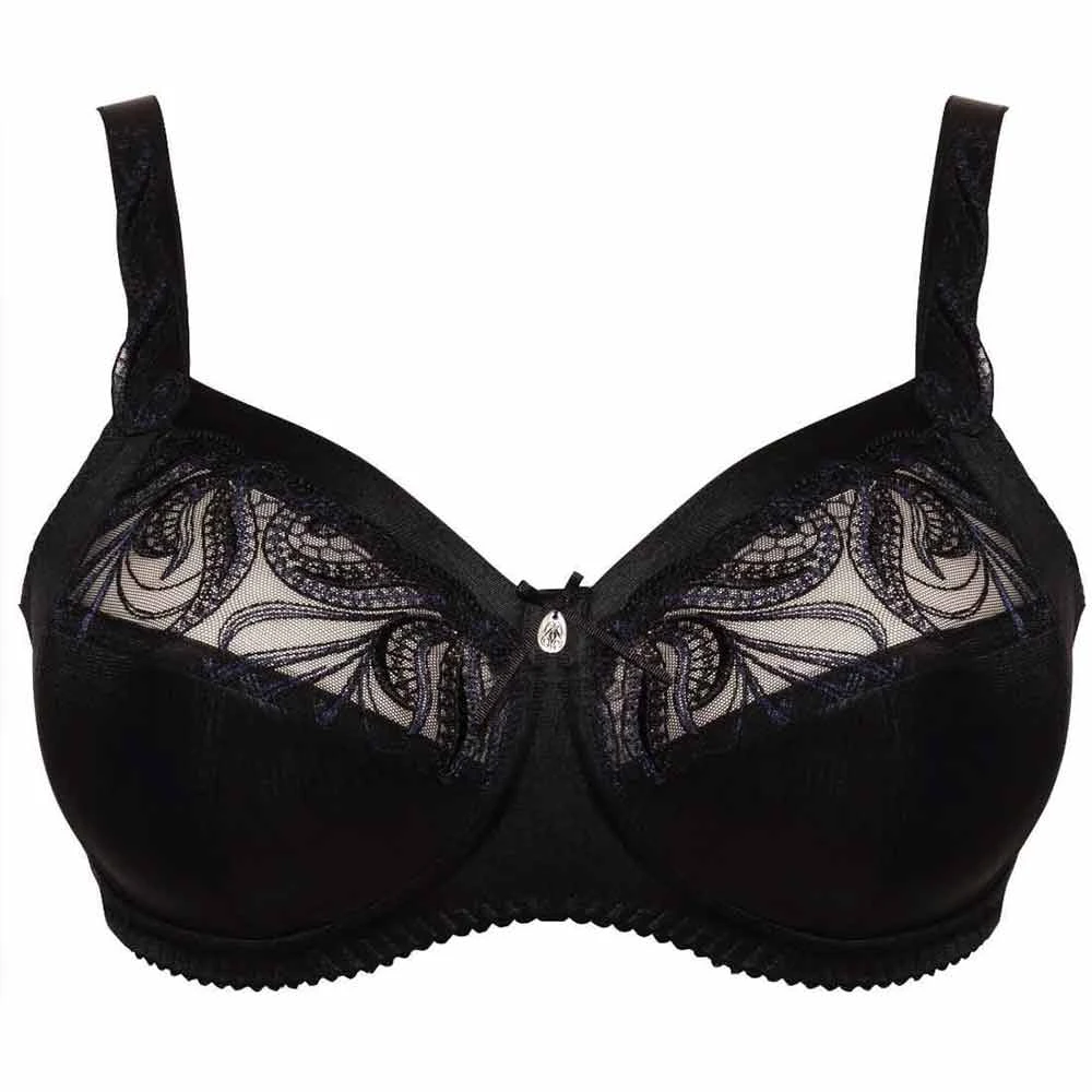Carmen Soft Cup Bra by Ulla Dessous. A firm support bra without wire, featuring clearly defined lines in shimmering colour teamed with enchanting embroidery. A good bra for heavy breasts creating a forward, uplifted shape.