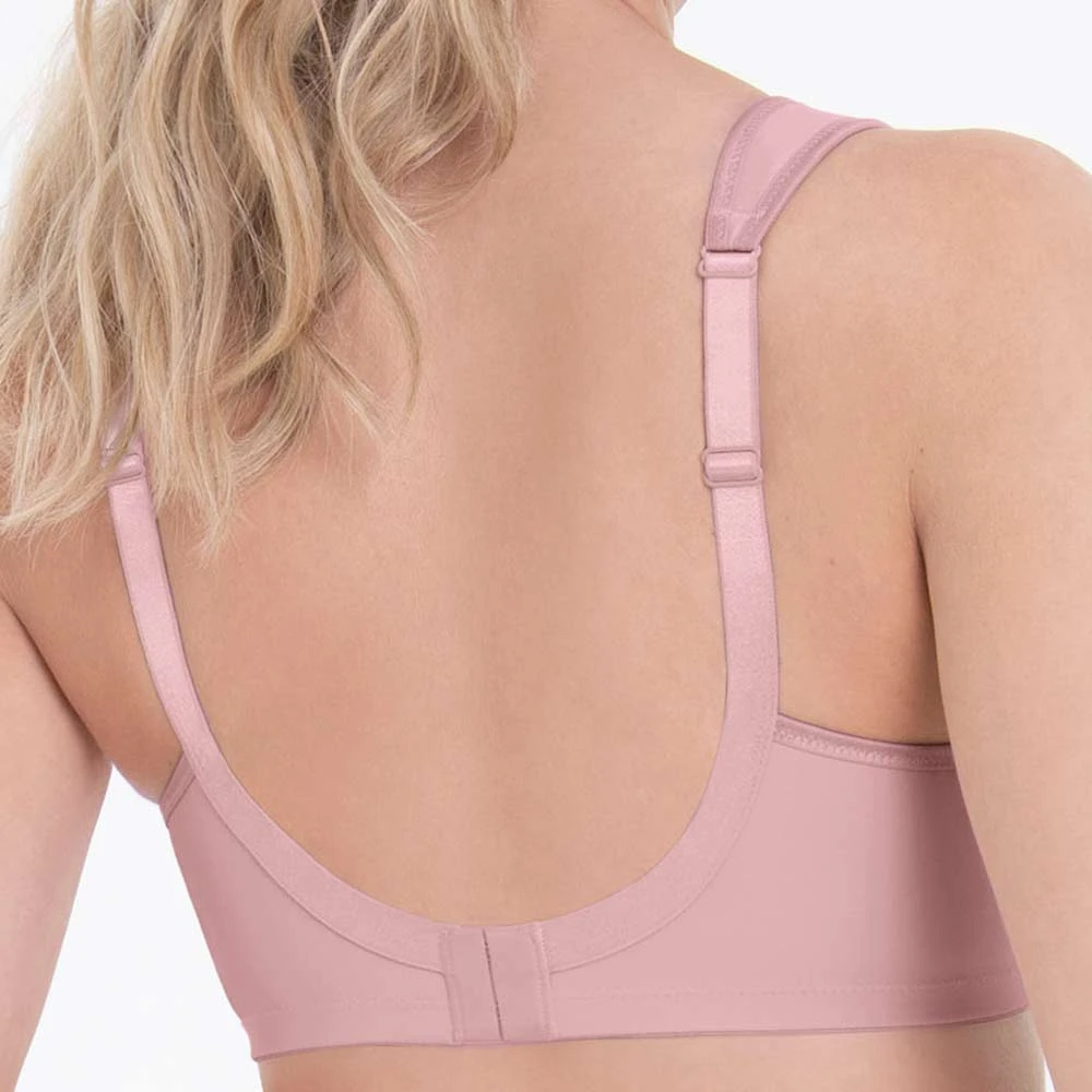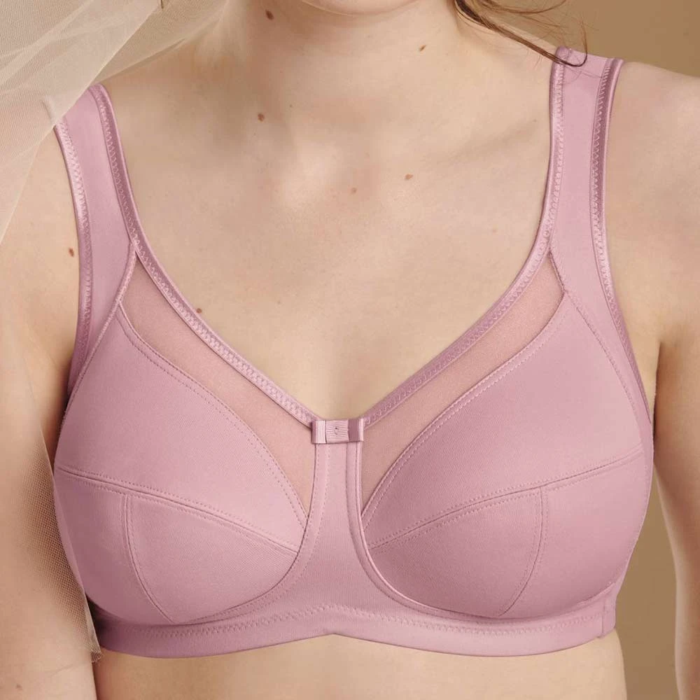 Clara Comfort Soft Cup Bra by Anita Comfort. A simple and attractive wire free full coverage 3 section cup bra that offers good support and all day comfort. Made from fine knit woven microfibre fabric for soft touch to the skin, with tulle panel on the top of the cups for a lighter look. The straps are slightly wider and half adjustable for comfort and to prevent digging in. Features anatomically shaped v-underband to prevent the pressure on the stomach. Perfect for shorter torso ladies