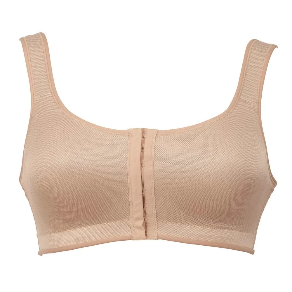 Cosamia front fastening soft cup bra by Anita Care. Comfort bra with hook and eye front opening for an ease of wear. Made from kind to skin supportive fabric with double layered moulded cups and pockets on both sides for post mastectomy wear. Comes with padded adjustable wide shoulder straps to take the pain of the shoulders.