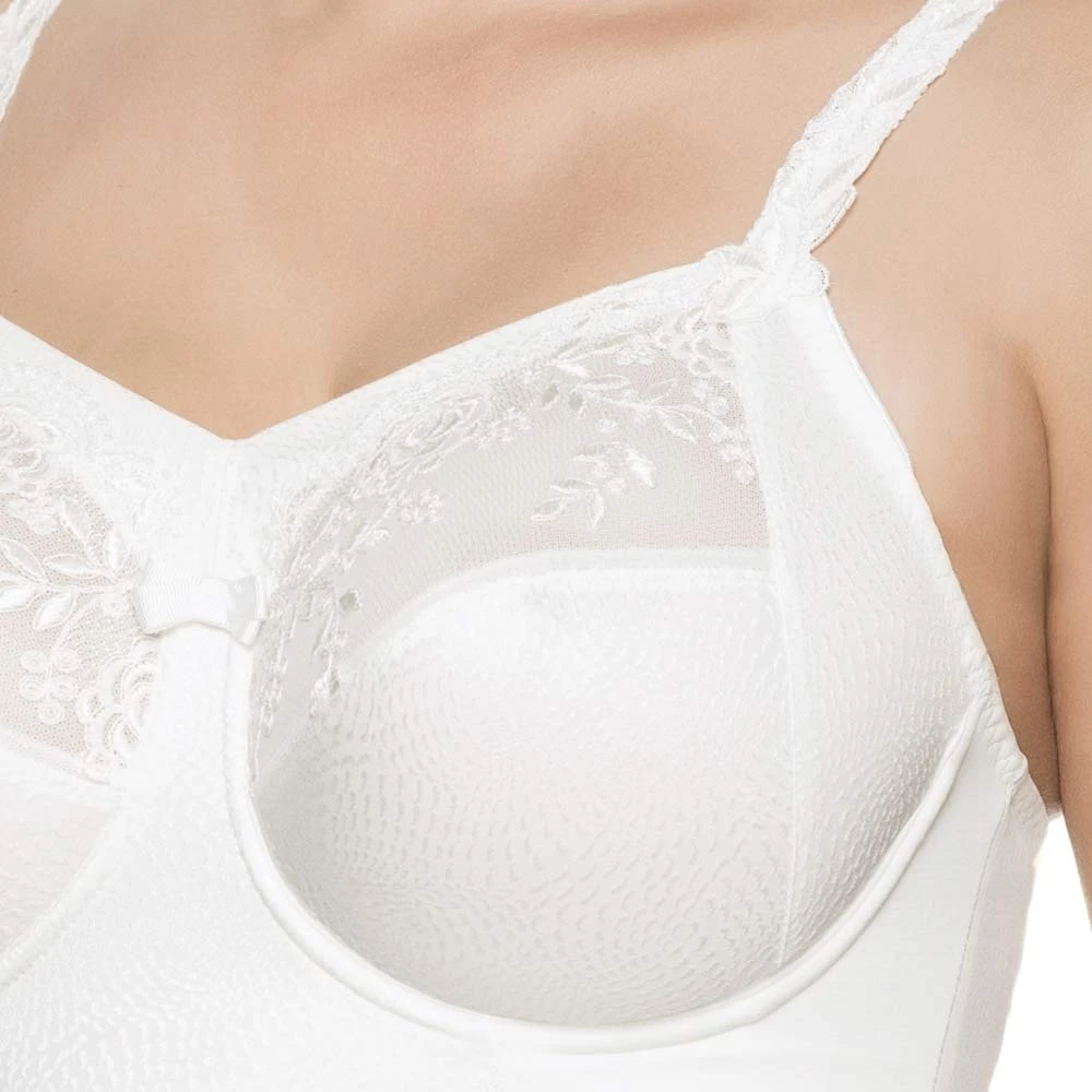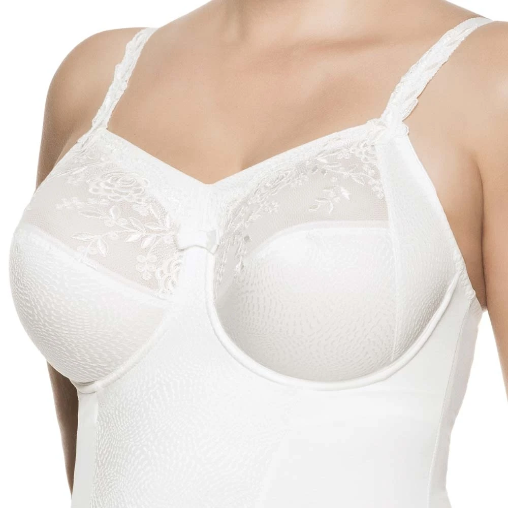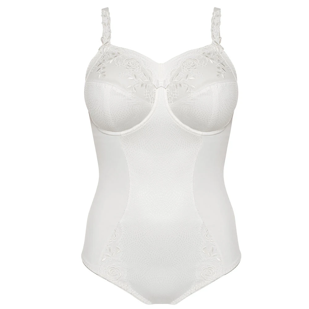 Ella underwired bodyshaper by Ulla Dessous for fuller busted ladies. Feminine collection available up to I cup! Made from strong high quality jacquard fabric with shaping tummy control panel. Three sectioned cups with side panel support and additional support band along the top of the cups. Perfect for special occasions e.g wedding or for every day comfort.