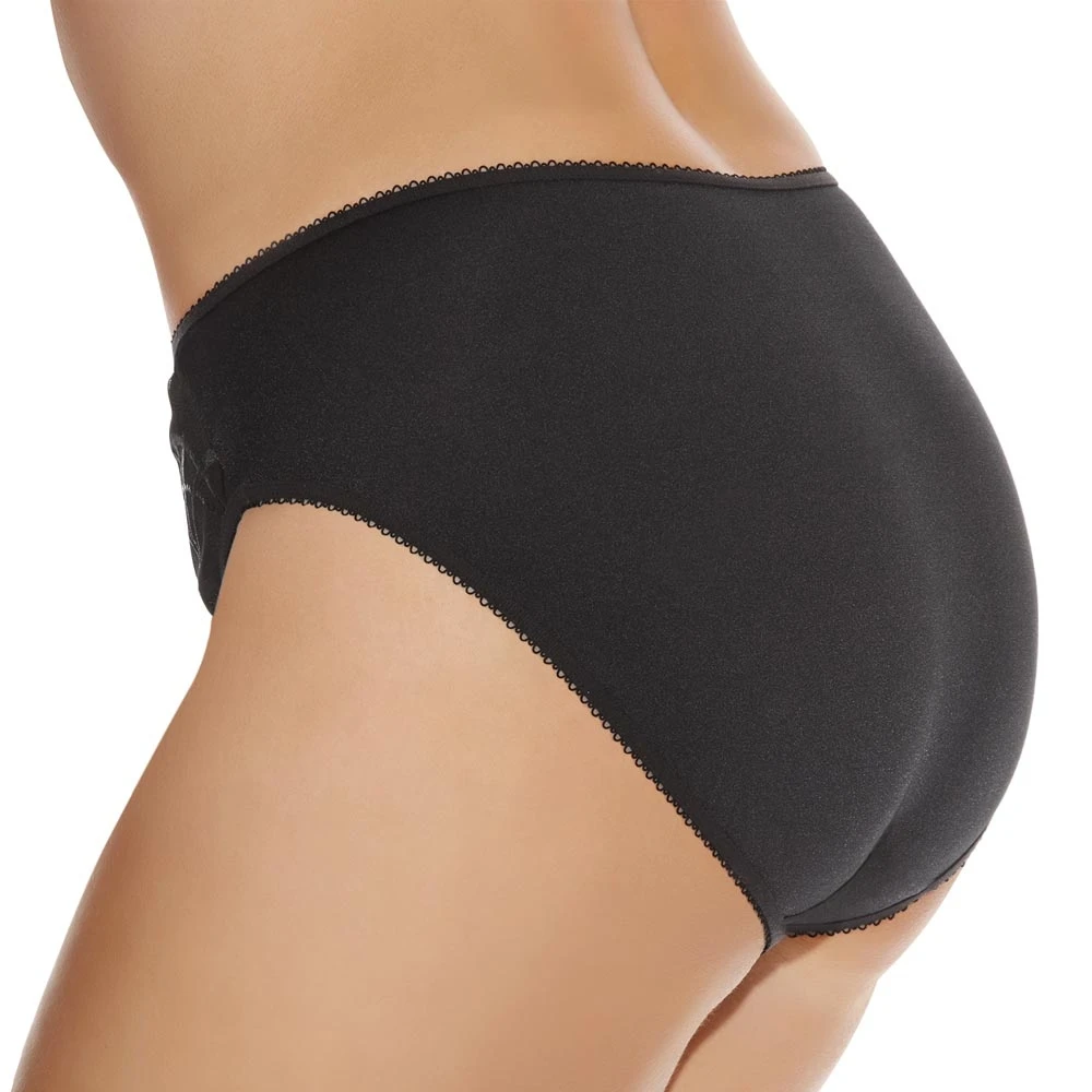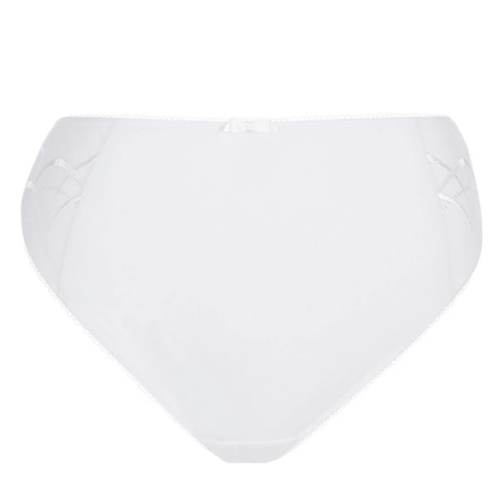 An updated version of the Caitlyn classic deep brief with intersecting arc embroidery. Plus size panty by Elomi for everyday comfort.