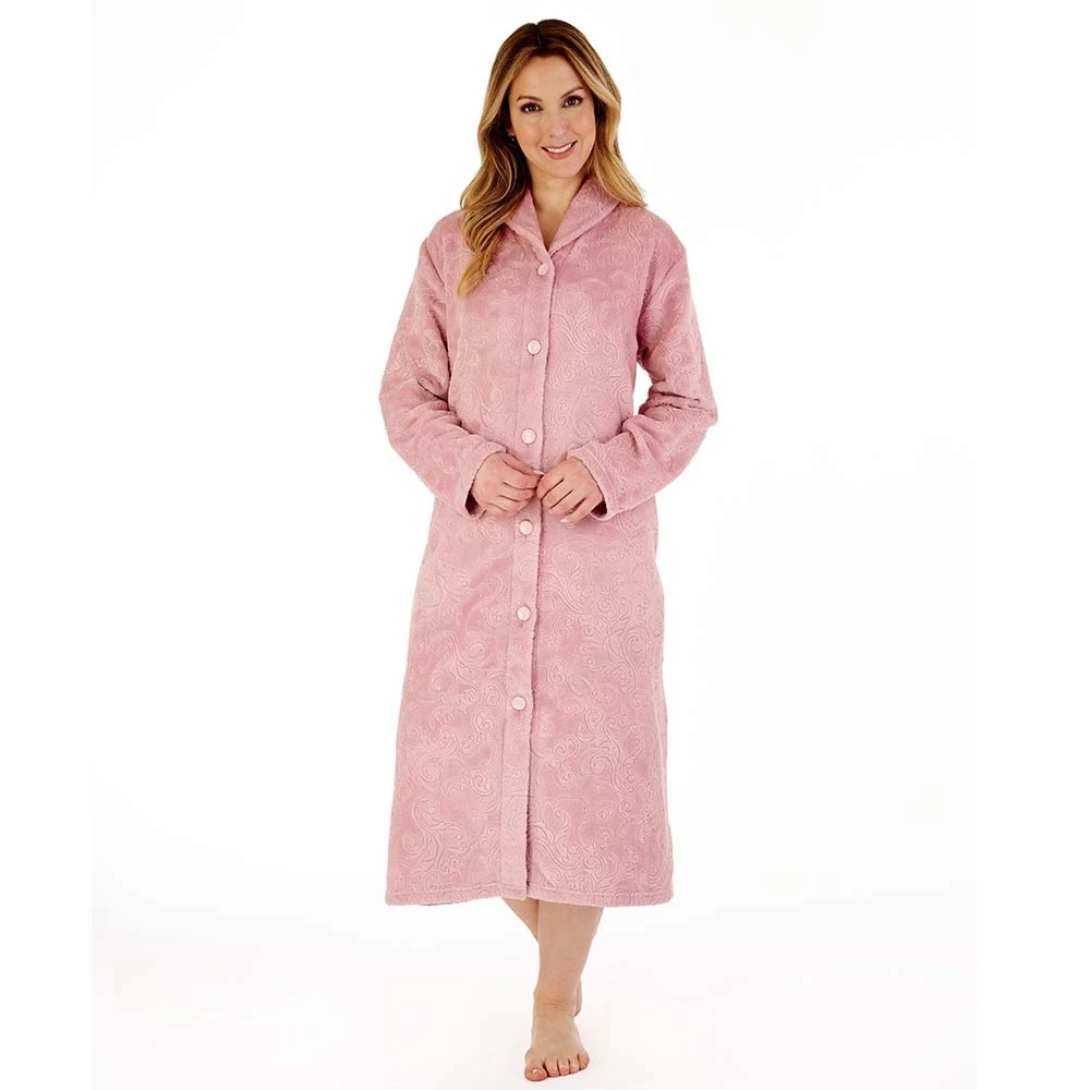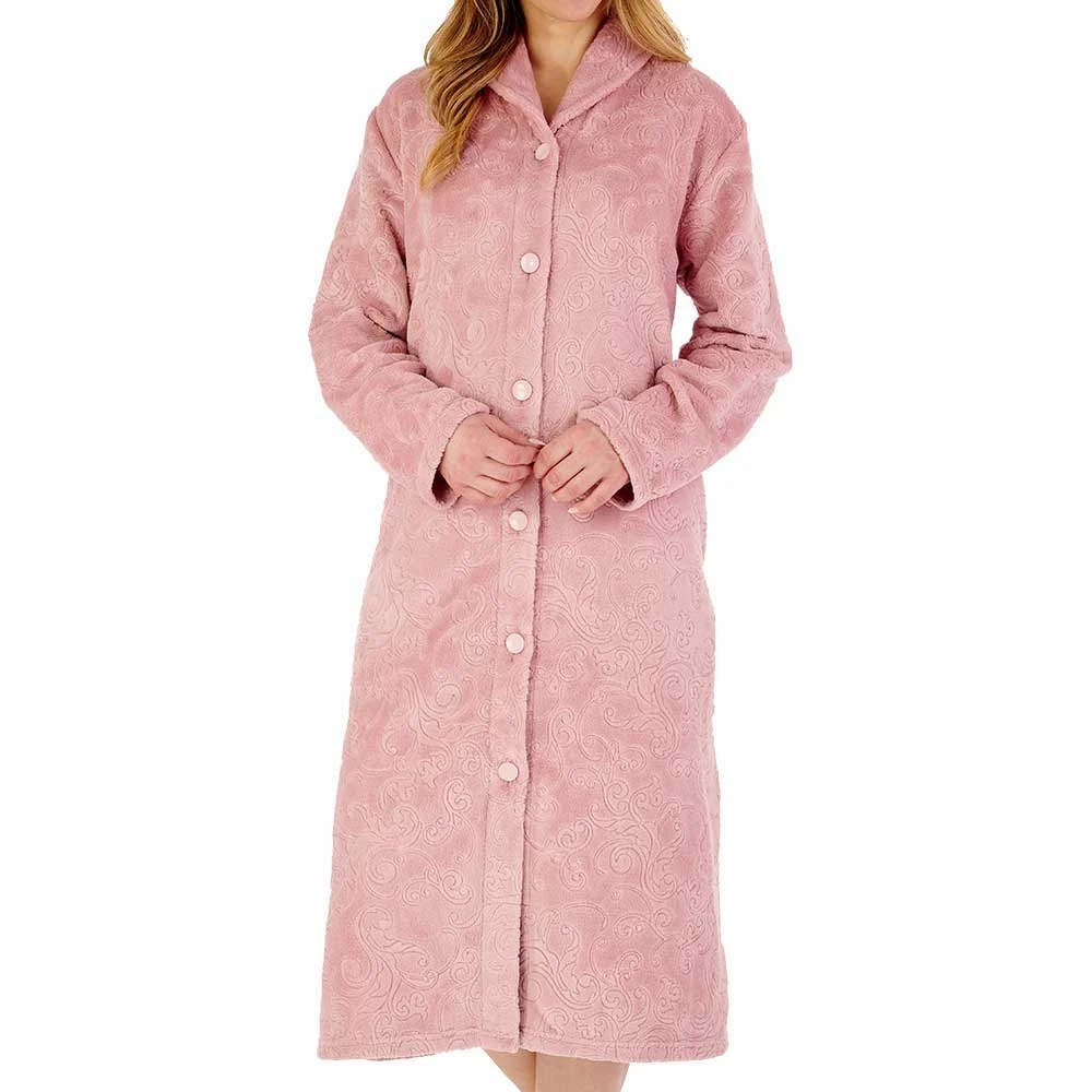 Embossed Scroll 46 inch button opening housecoat by Slenderella.