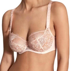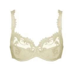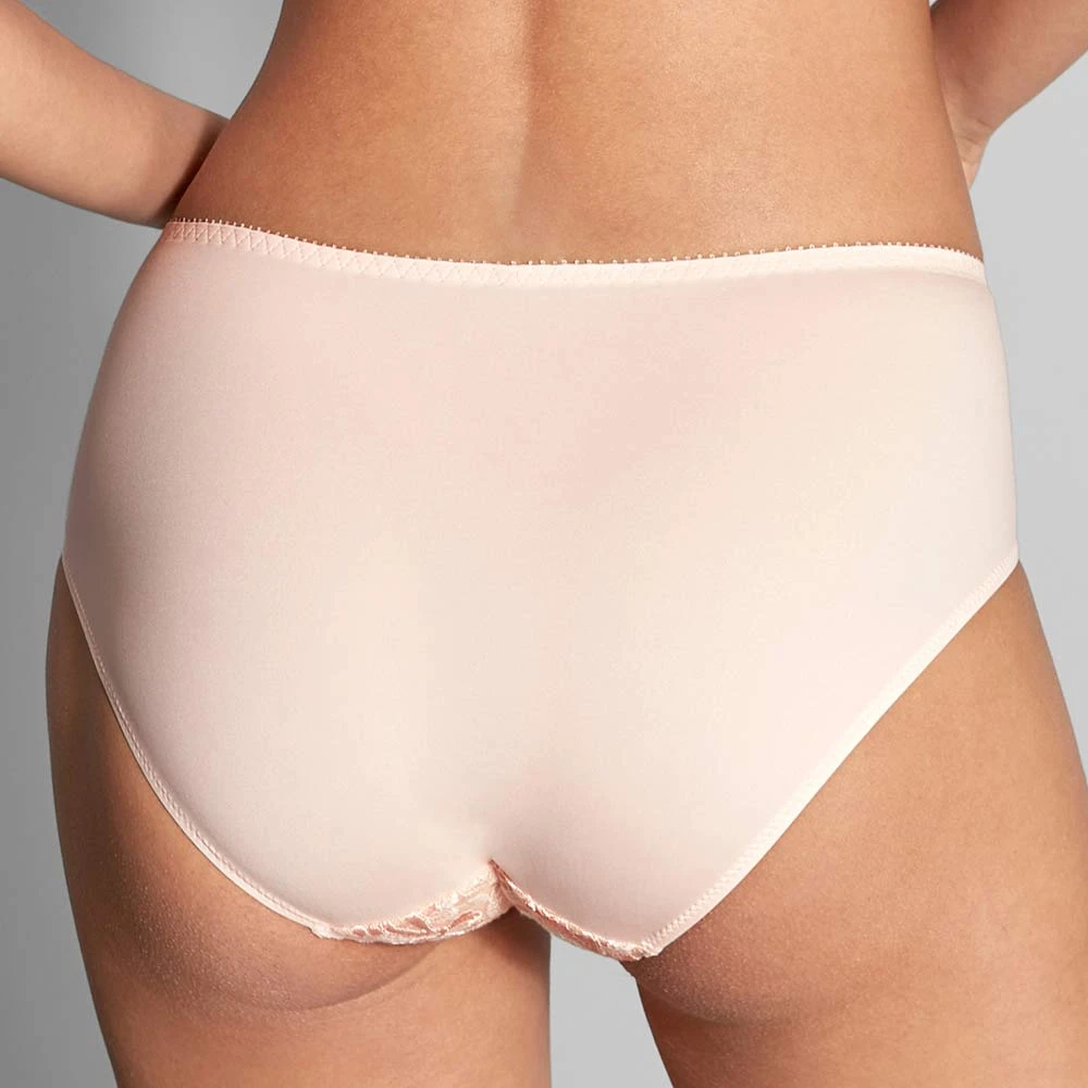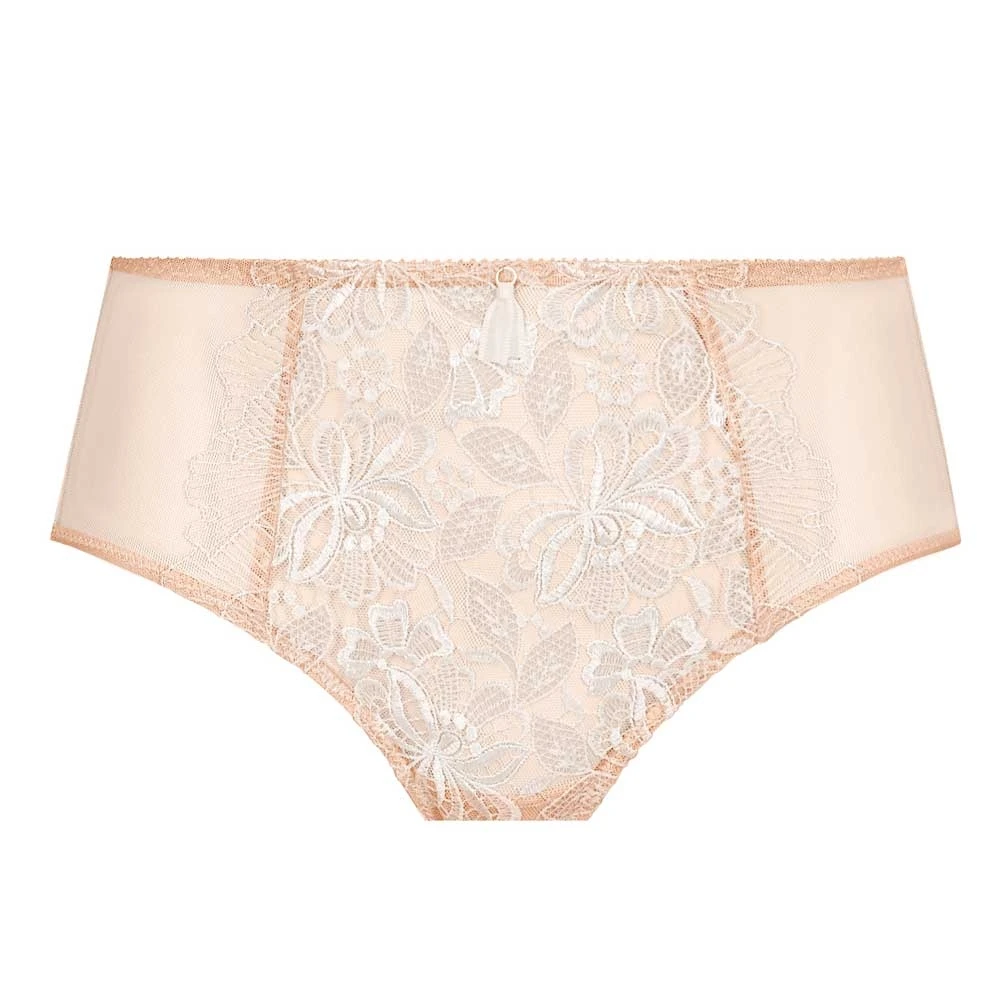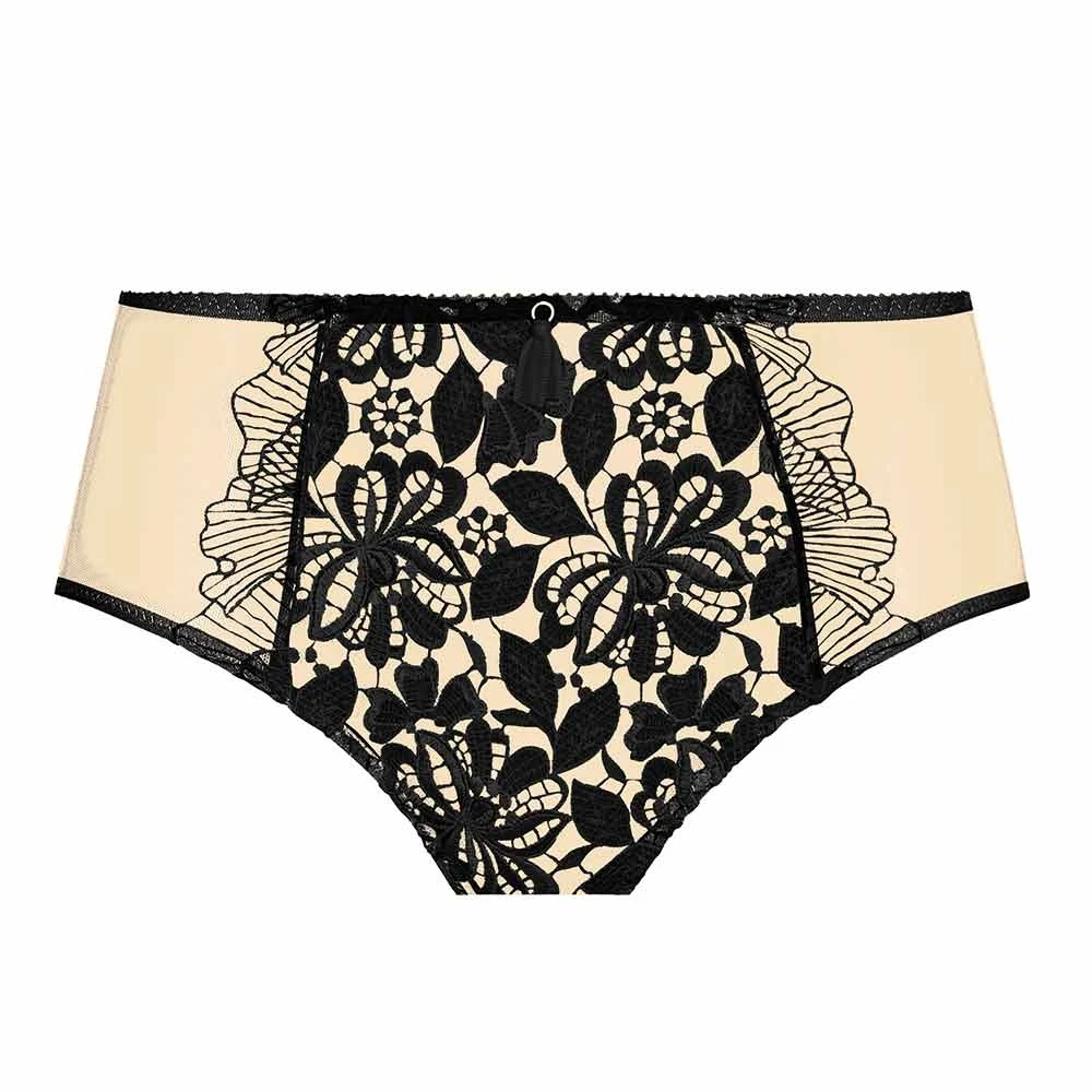 Agathe panty by Empreinte. Full coverage ladies briefs with plain, opaque back and heavy decorated lacy front combining vintage and contemporary vibes for a retro look.