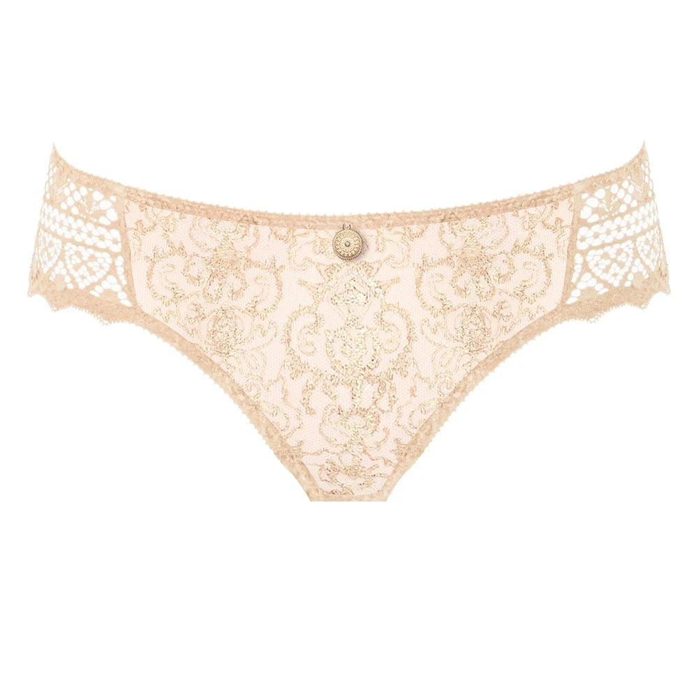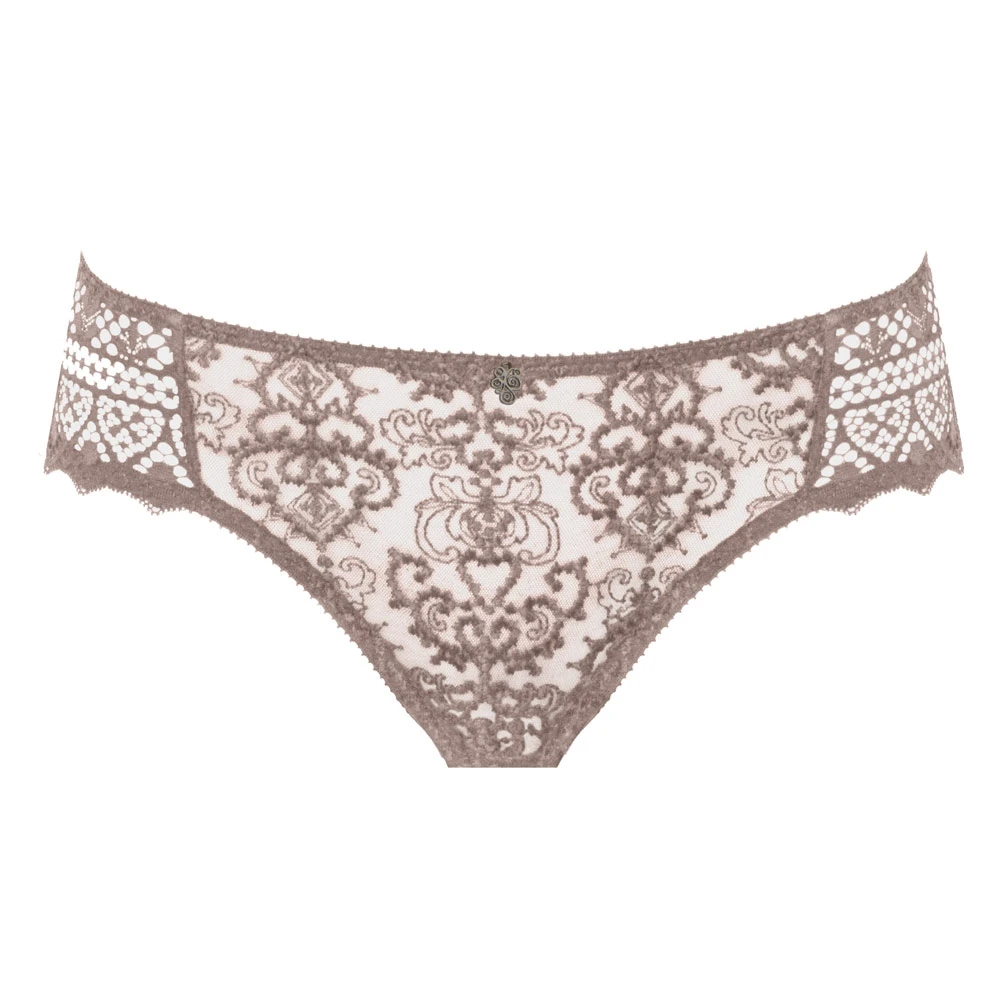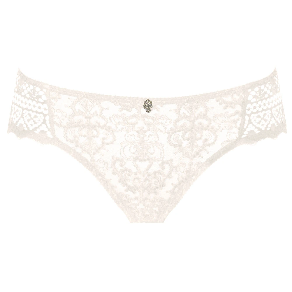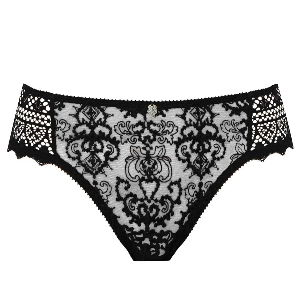 Fine embroidered brief by Empreinte with striking mesh lace and shimmering dots reminiscent of the Cassiopeia constellation finished with lace panels to the sides for a sophisticated look.
