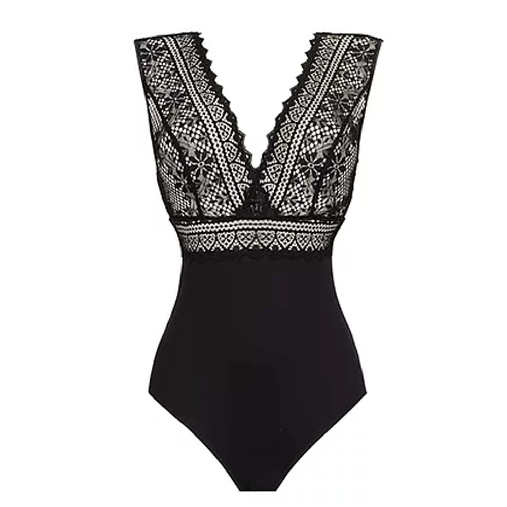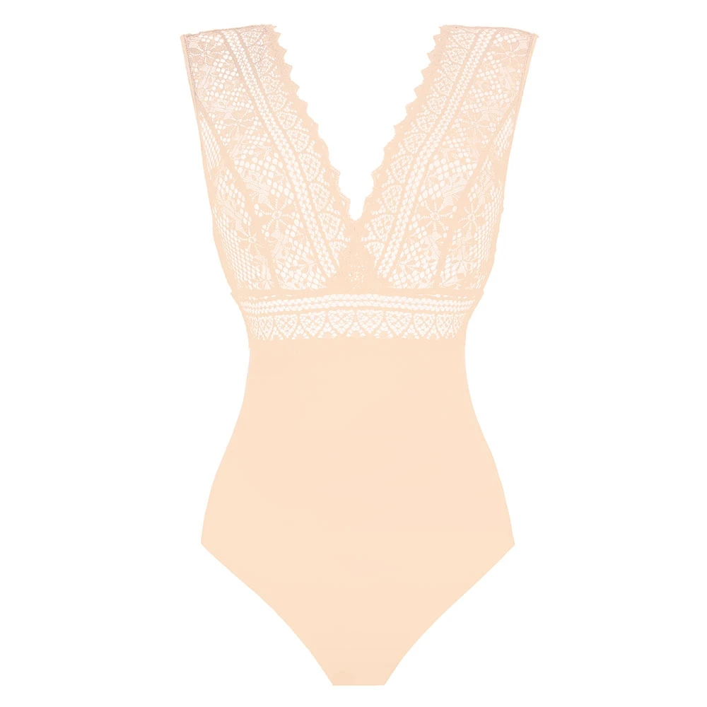 Cassiopee soft cup body by Empreinte. Stunning all in one bodysuit with deep v-neck and deep cut back to add to the sophisticated Cassiopee collection. Bottom part is is made from soft and stretchy fabric with popper gusset opening. Top is made from luxury lace which highlights the femininity of this garment. As this body provides only very light control we would suggest it to be worn with matching Cassiopee bra.