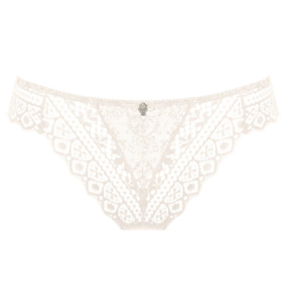 Beautiful thong by Empreinte with intricate shimmering embroidery and mesh lace reminiscent of the Cassiopeia constellation. Elegant lingerie set.