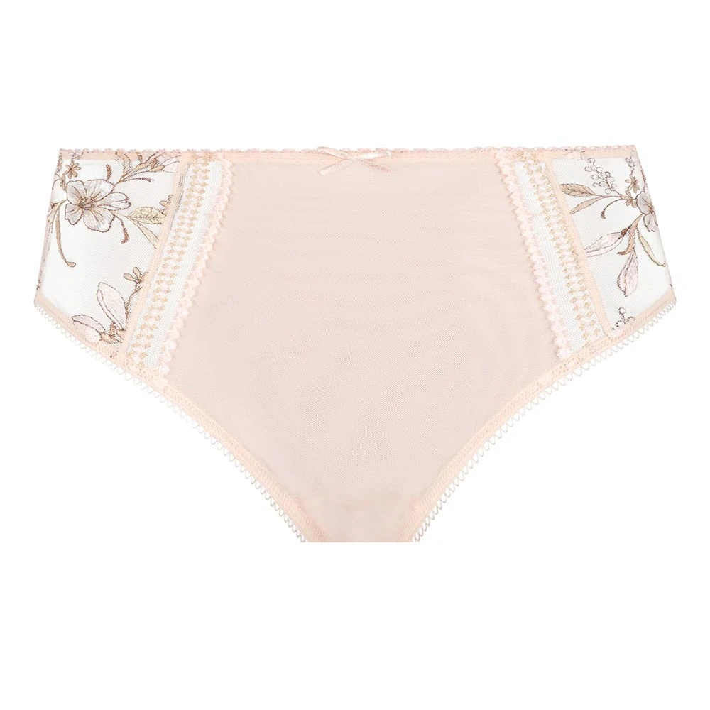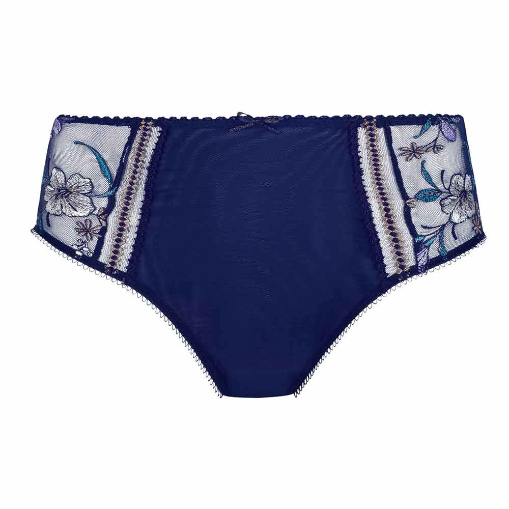 Lauren Panty by Empreinte. Full coverage ladies briefs with plain opaque back and tulle inserts to the front with beautiful floral embroidery. The legs are cut slightly higher in this style for comfort.