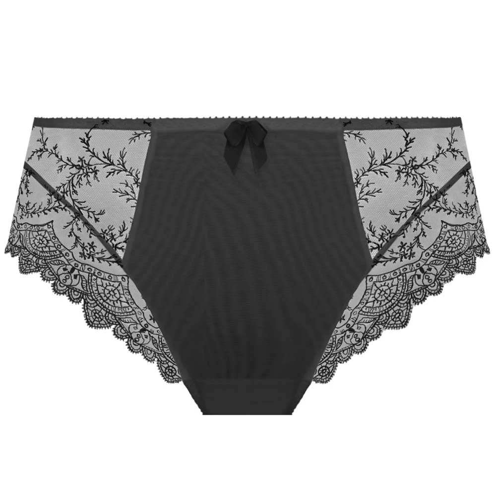 Louise panty by Empreinte. Full coverage briefs made from soft solid fabric to the back and mesh to the front and finished with beautiful lace embroidery to the front panels. Louise is a very feminine romantic collection for every day wear or special occasions.