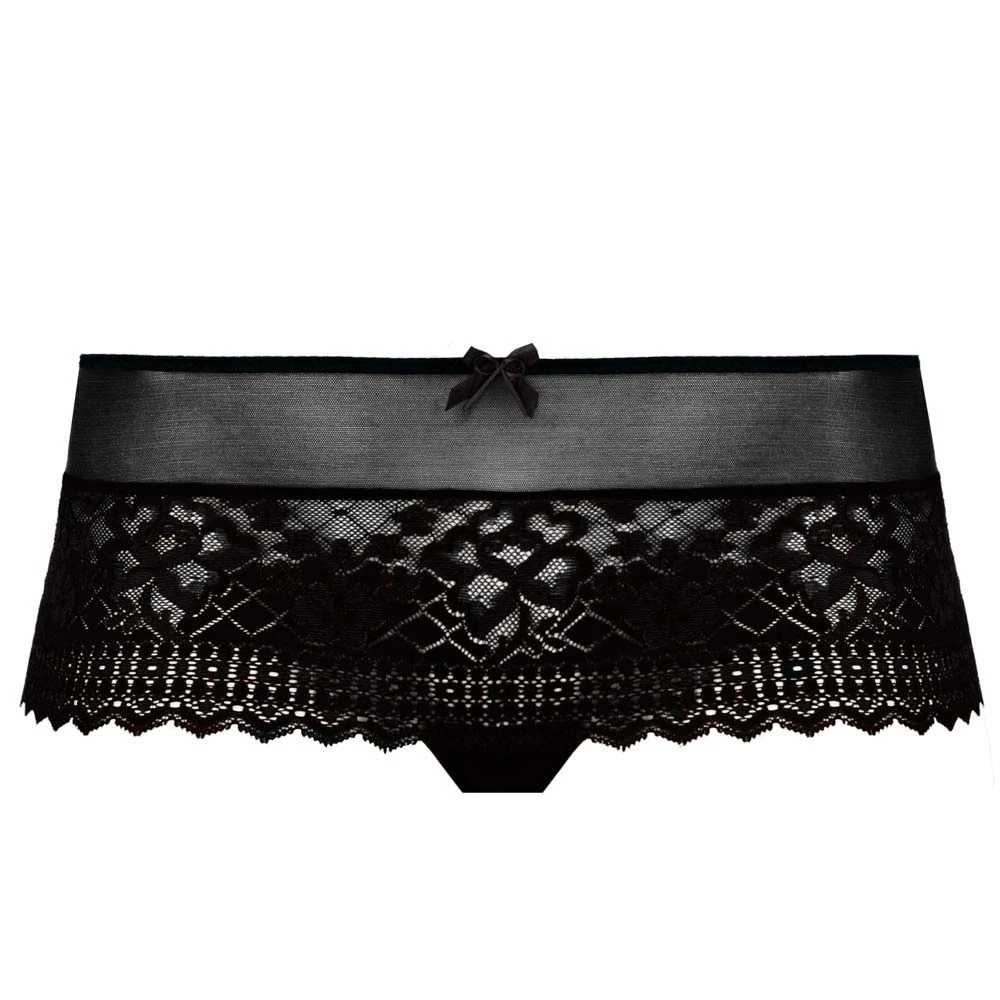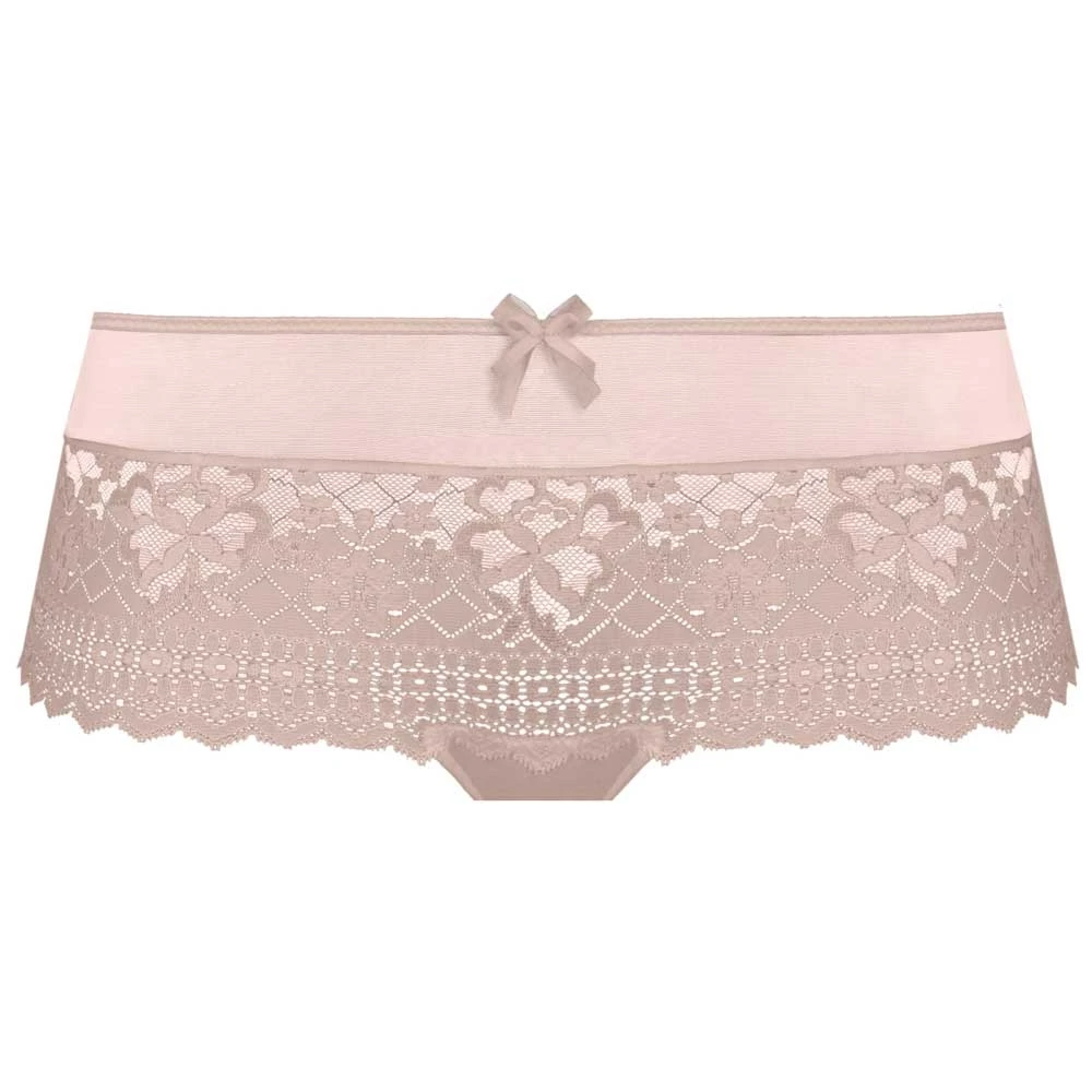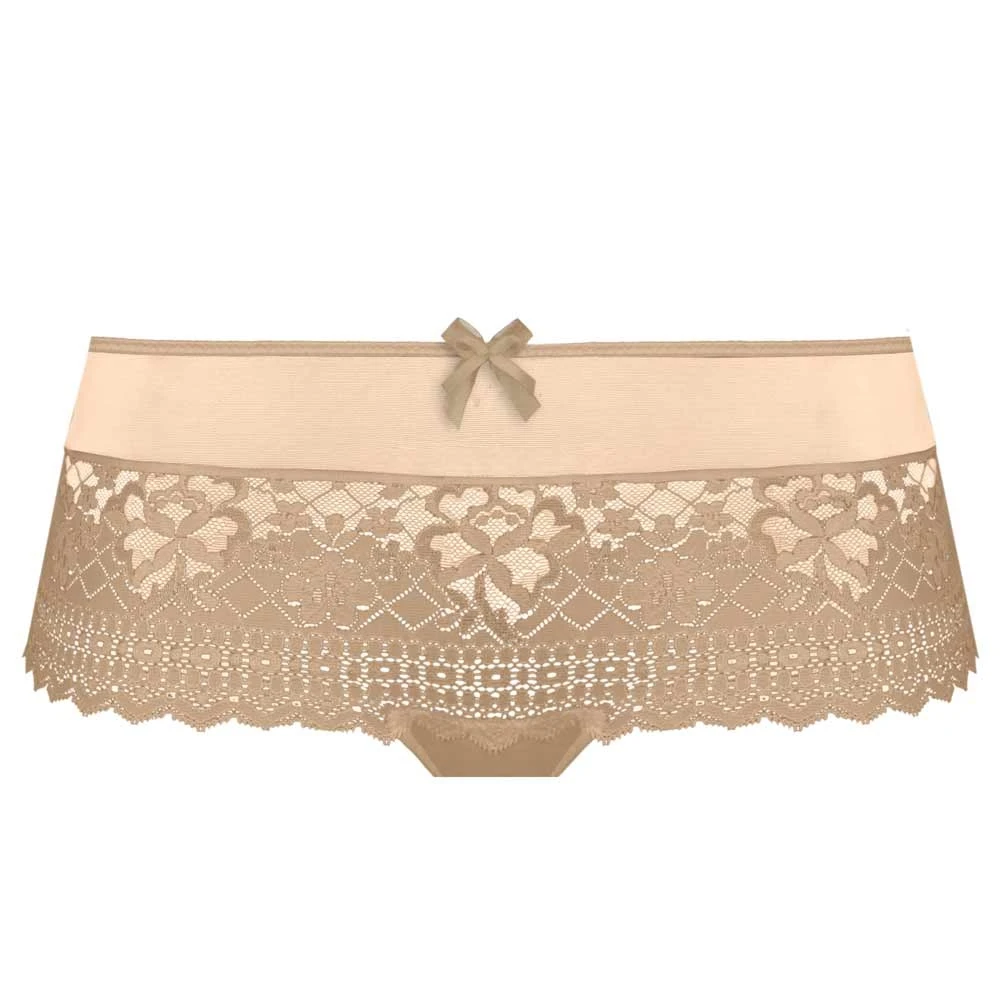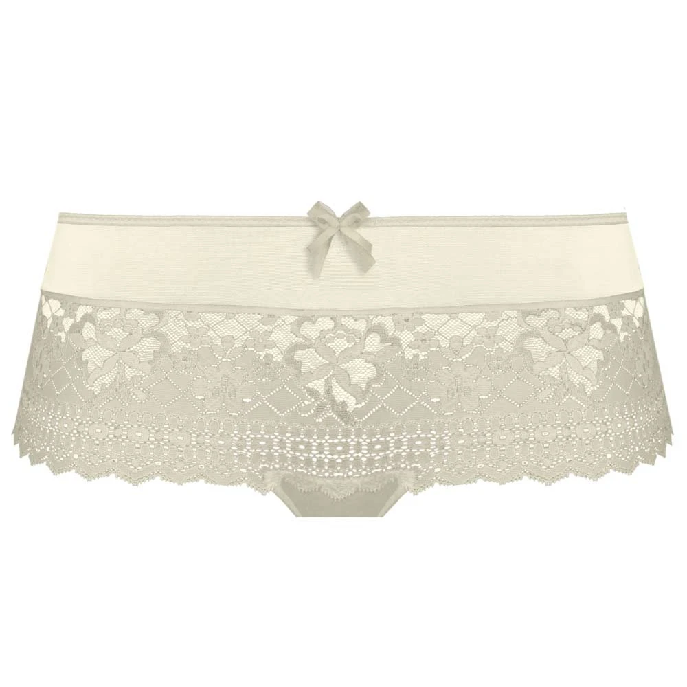 Melody shorty by Empreinte. A replacement for the Melody shorts code 1286. Made from stretchy, soft and delicate lace with an elasticated mesh round the waistband for all day comfort. Legs are finished with clean cut and no seams.