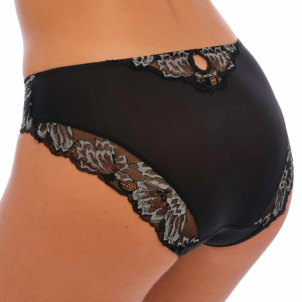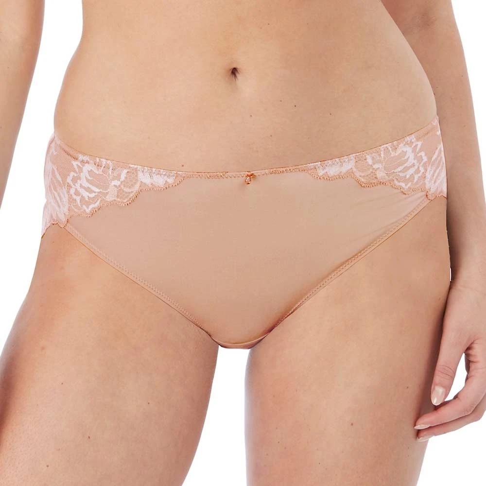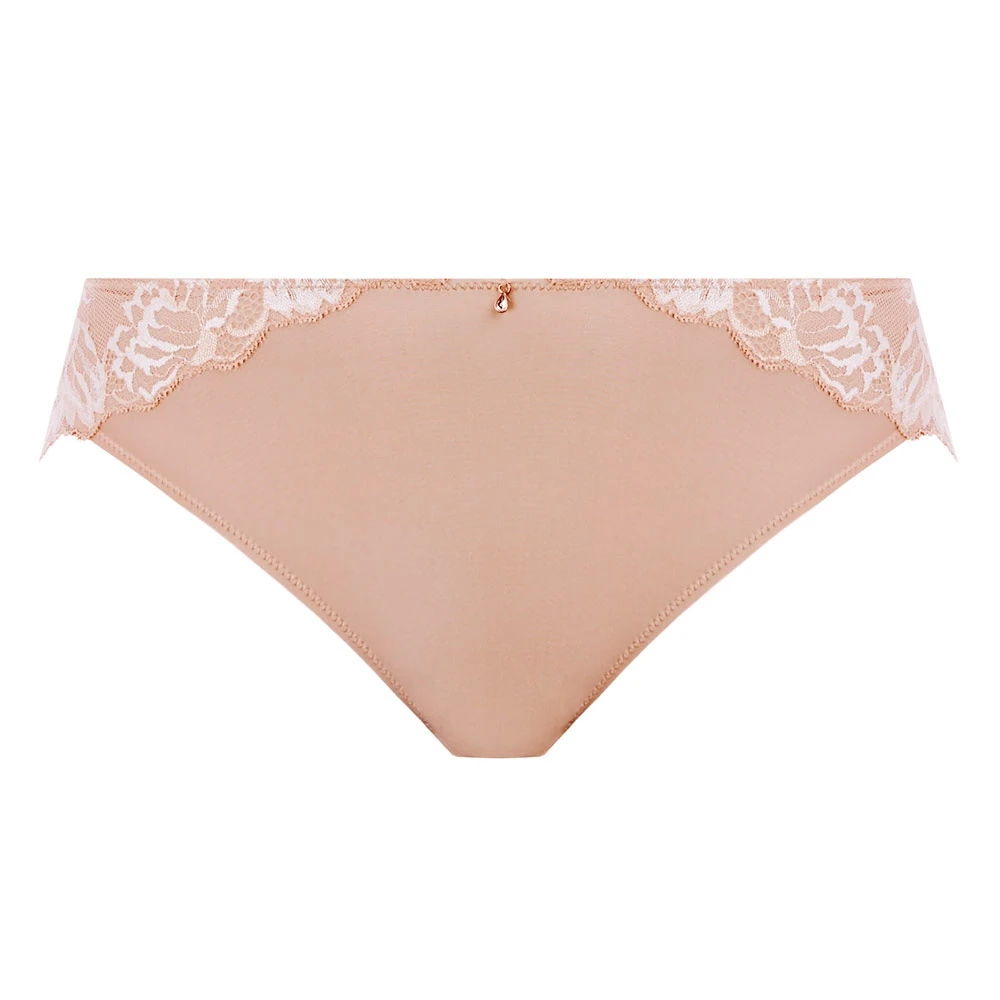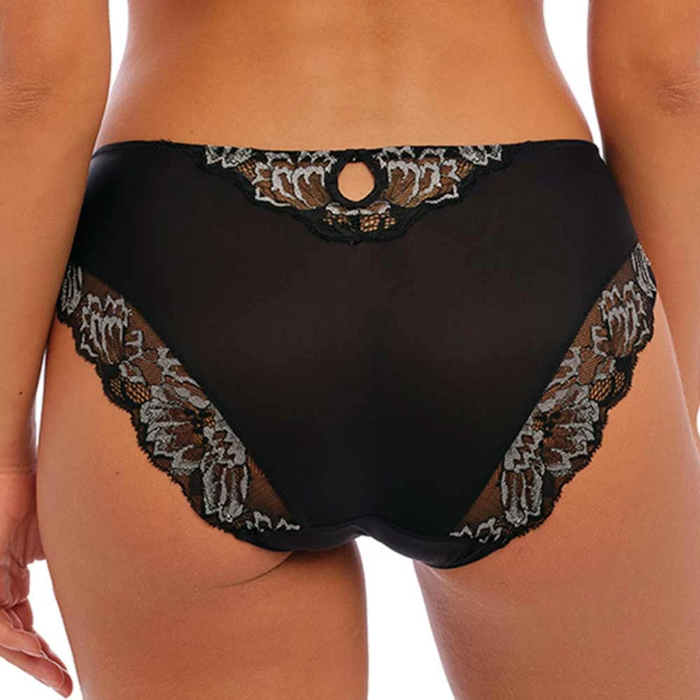 Aubree briefs by Fantasie Lingerie. Classic shape ladies brief made from opaque soft fabric and finished with lacy details to the front and back. With pretty charm to the centre front waistband and lacy key hole to the centre back to match the bra pattern.