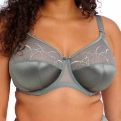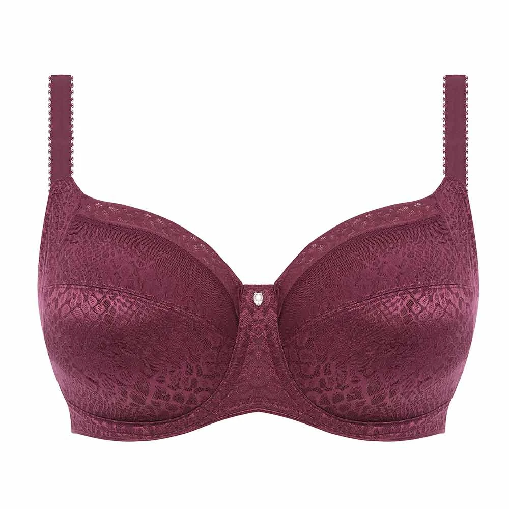 Envisage underwired side support bra by Fantasie Lingerie. Full coverage bra with three section cups and a wide side panel for great support and forward projection. Based on the Fusion FL3091 style with slightly deeper underarms. Made from soft to handle fabric and finished with stretchy flat jacquard lace along the neck edges for an ease of fit. Bottom cup is lined for better fuller bust support and the outer seamless fabric gives a smooth silhouette under clothing. Features tow back and an innovative angled ring to give central pull through the straps and to prevent strap slippage.