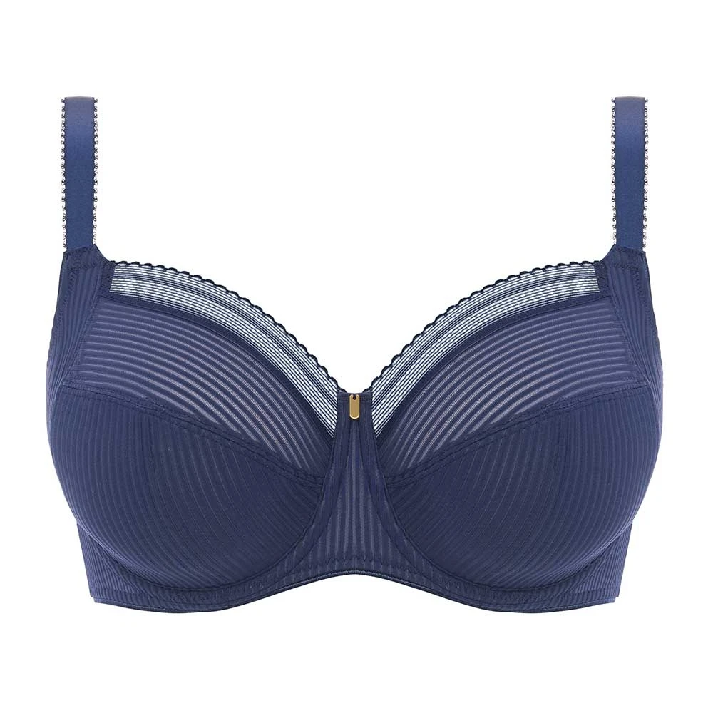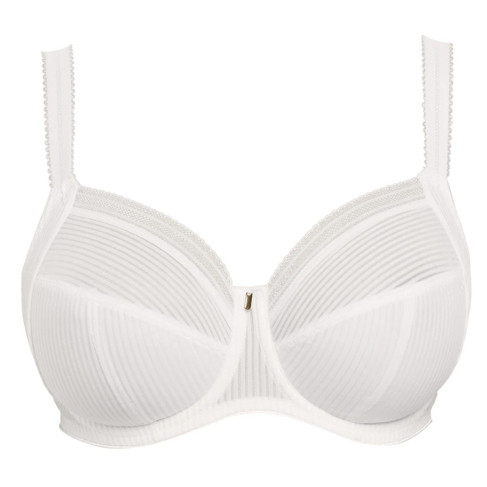 Fusion underwired bra by Fantasie Lingerie. Full cup bra with three sectioned lined cups and side panel for forward shape, uplift and support specially for fuller busted ladies. Made from soft handle striped jacquard fabric and finished with padded hook and eye for every day comfort. Top cup has elasticated edges for ease of fit an neckline. Fusion is a timeless feminine collection for elegance and forever confidence. A lingerie drawer essential.