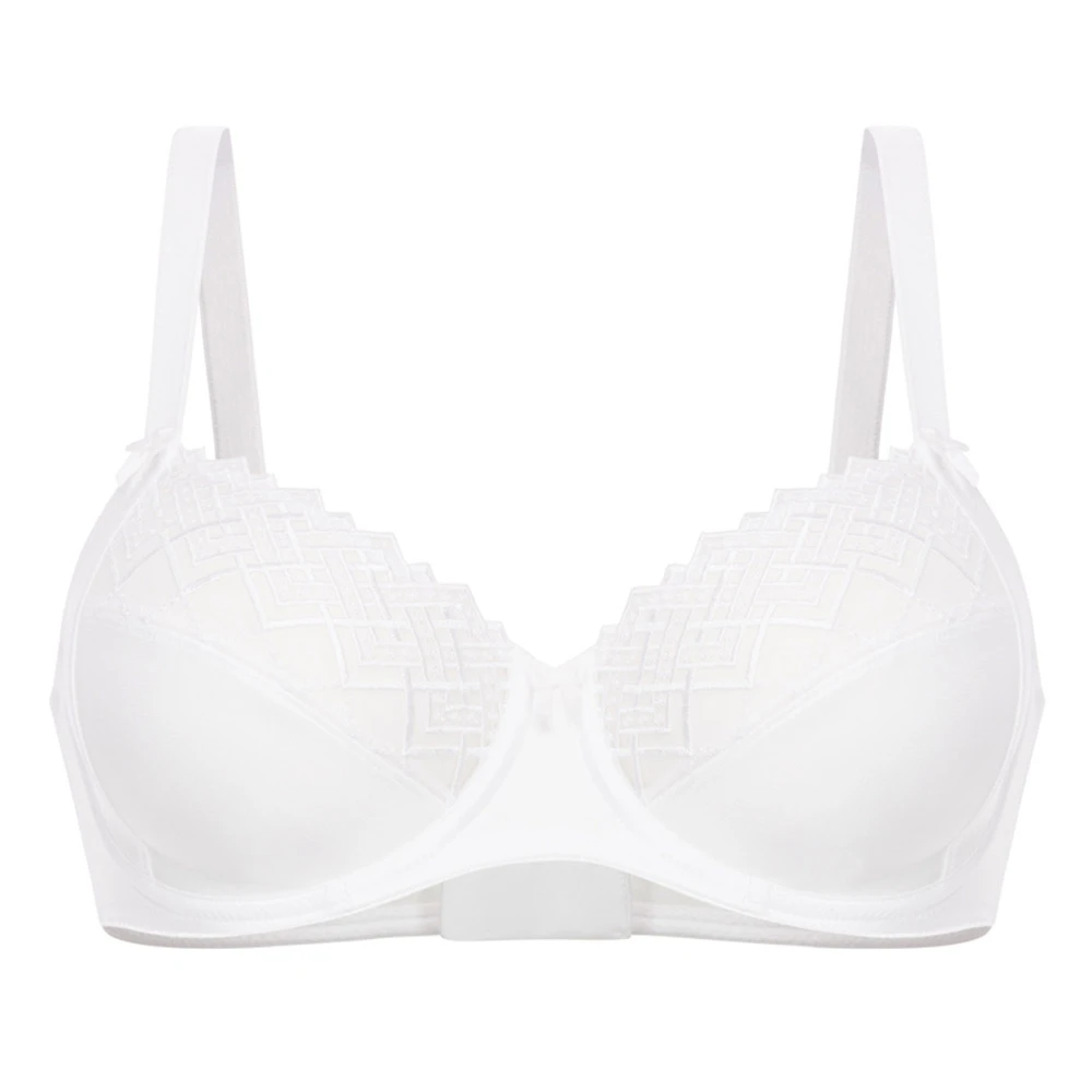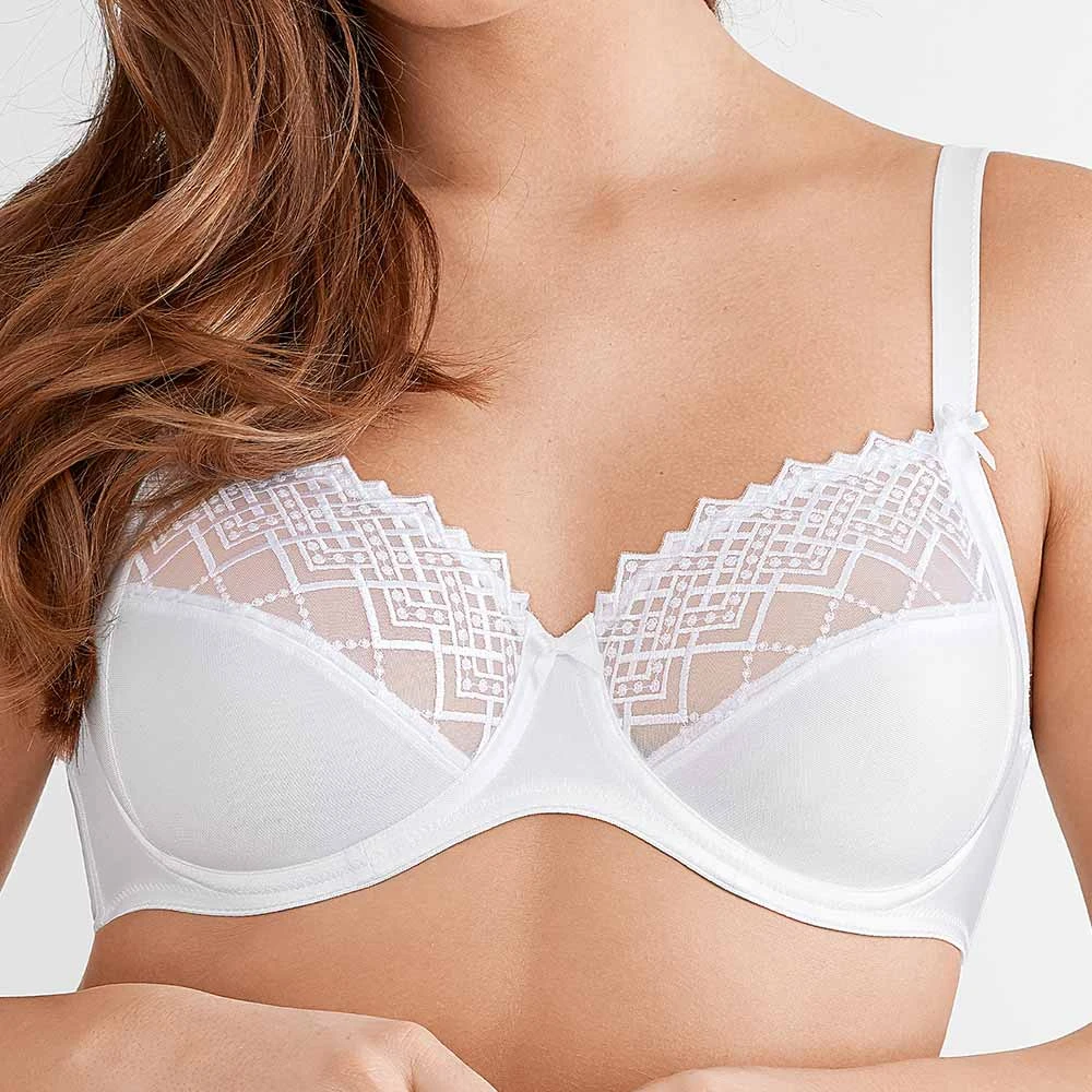 Joy by Felina – Support and style with ease of fit from the stretch neck edge. Elegant embroidery detailing to half cups make for a feminine beautifully fitting bra. Available in Plus Size.