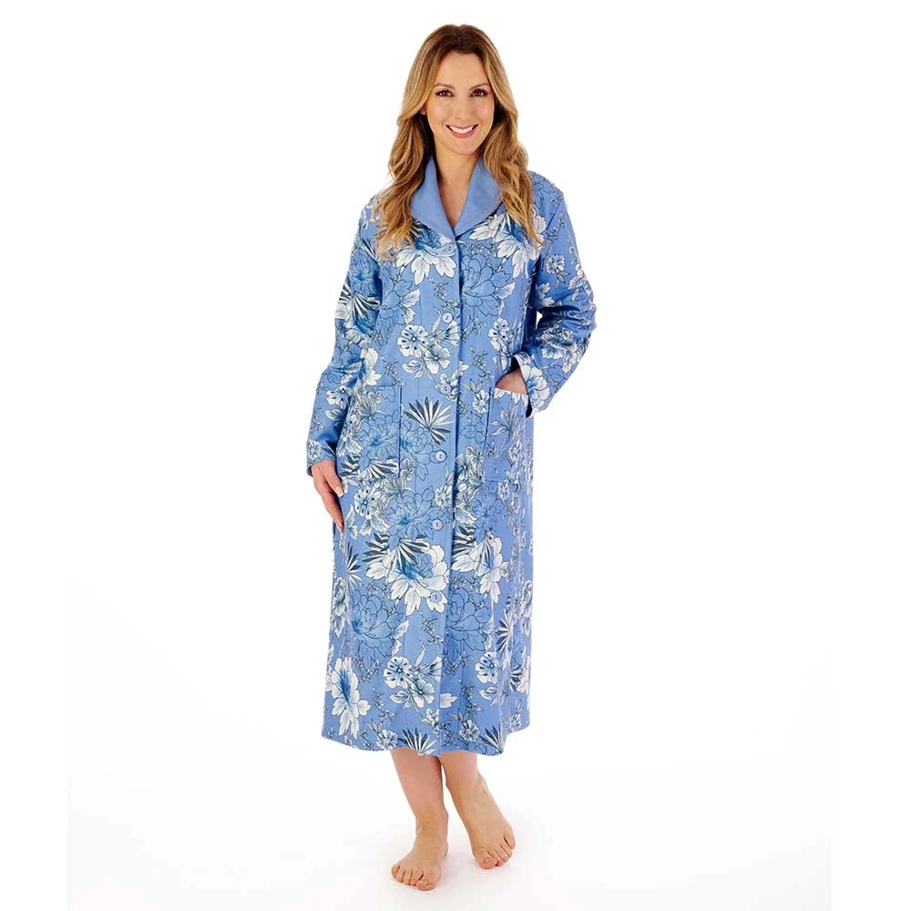 Floral Print Luxury Bamboo Button Through 46 inch Housecoat by Slenderella