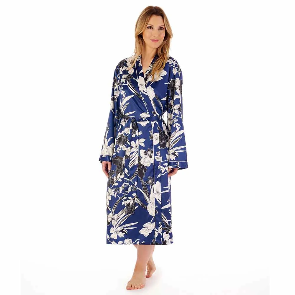 Floral Satin Long Sleeve 46 inch Kimono Wrap