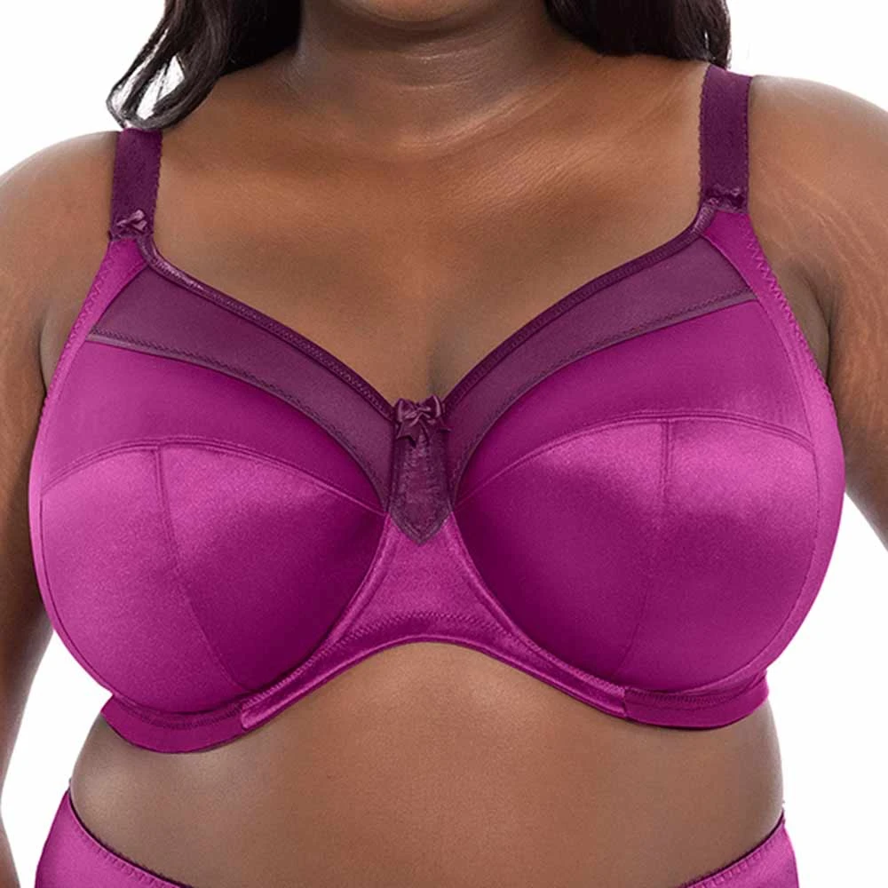 Goddess Keira Wired Bra. A four sectioned cup of satin simplex fabric with side panel for forward shaping. Sheer top cup with a slight v-neck for a flattering look. Ultra supportive style for everyday wear perfect for fuller busted ladies. This bra is the same shape as Kayla GD6162- Check this out for other colours!