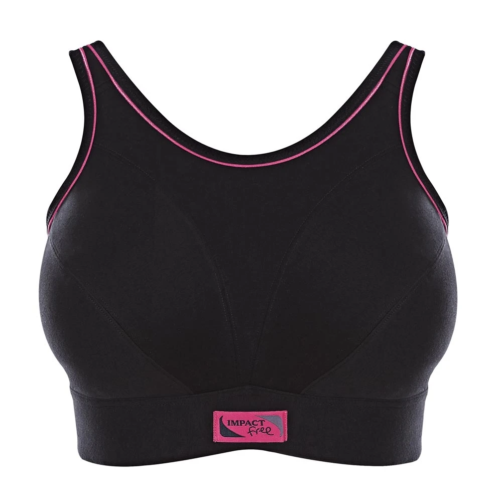 Impact Free sports bra by Royce. Cotton wire free bra designed to provide support through the toughest of workouts. Comes with high neckline for full coverage of the bust to reduce vertical bounce. With wide waistband for extra comfort and support for fuller bust. This 100% cotton bra with no underwire is a perfect choice for everybody who is looking for excellent comfort while exercising.