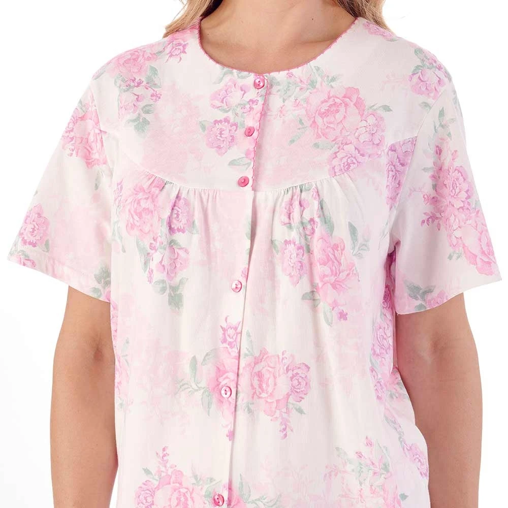 Large Floral Short Sleeve Cotton Jersey Pyjama Set by Slenderella