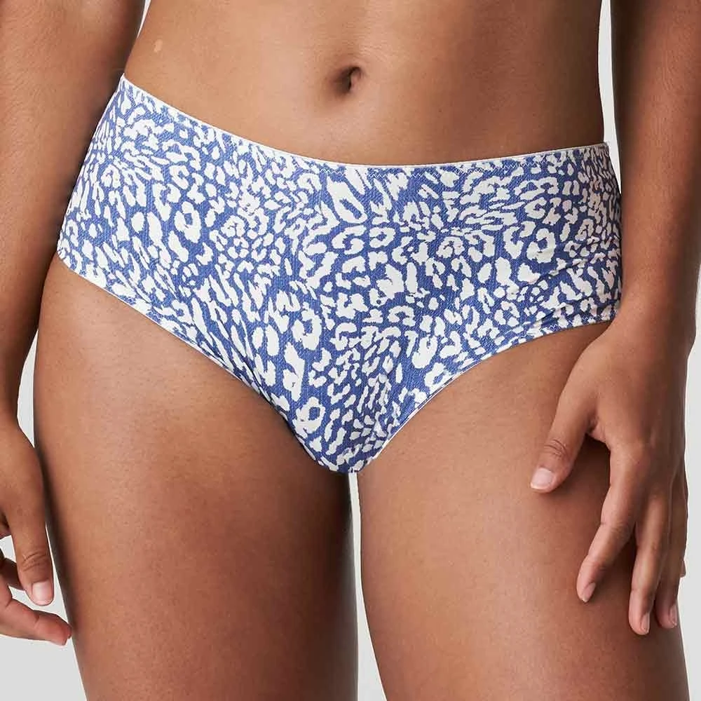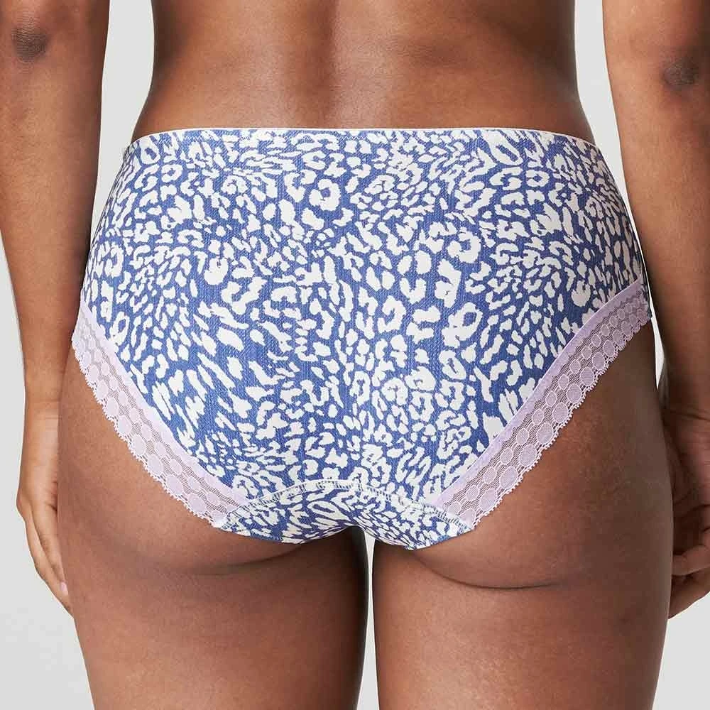 Lari full briefs by PrimaDonna Twist. Full coverage high waist briefs made from all over denim print opaque fabric with delicate lace trim on the back leg to match the summer look Lari collection.