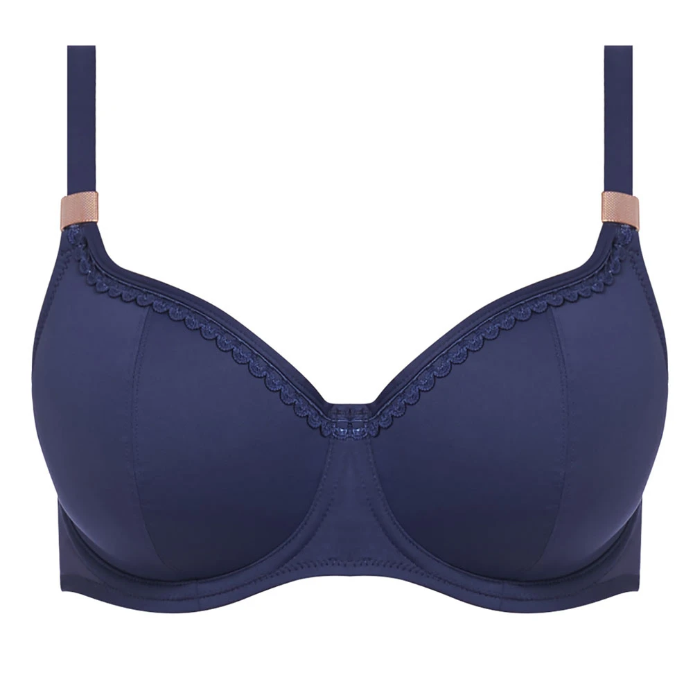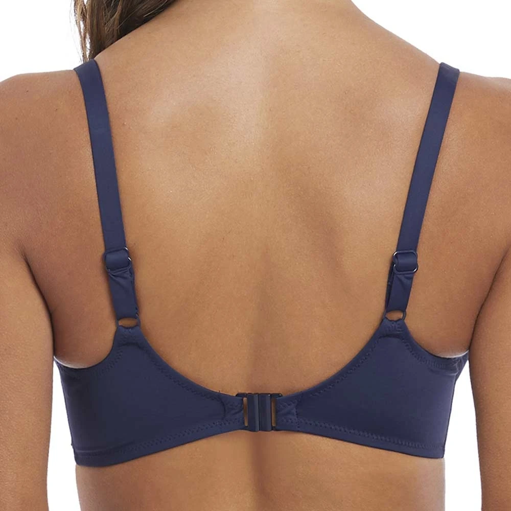 Marseille lightly padded bikini top by Fantasie Swim. Balcony style with underwired foam cups for support and a smooth shape. With fully adjustable fixed straps and powernet lined wings for comfort. Marseille is a sophisticated, luxury collection for a feminine sexy look.