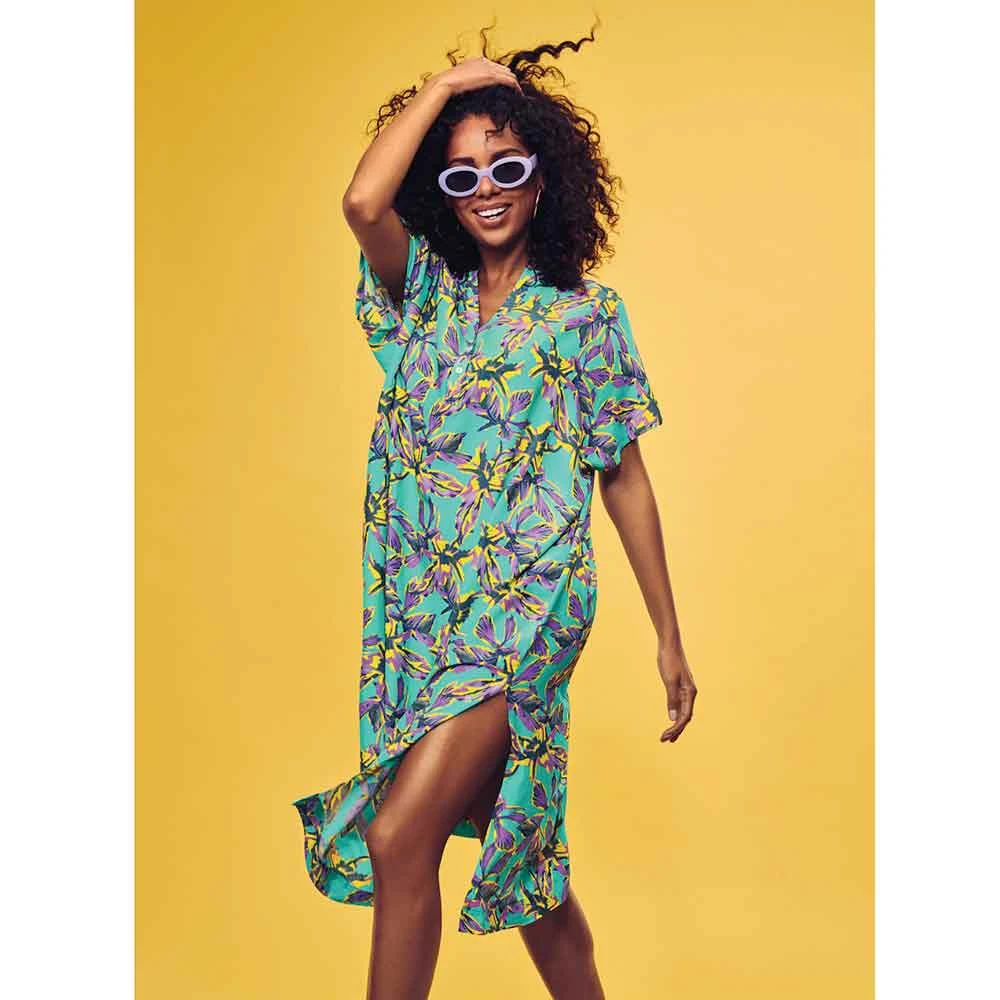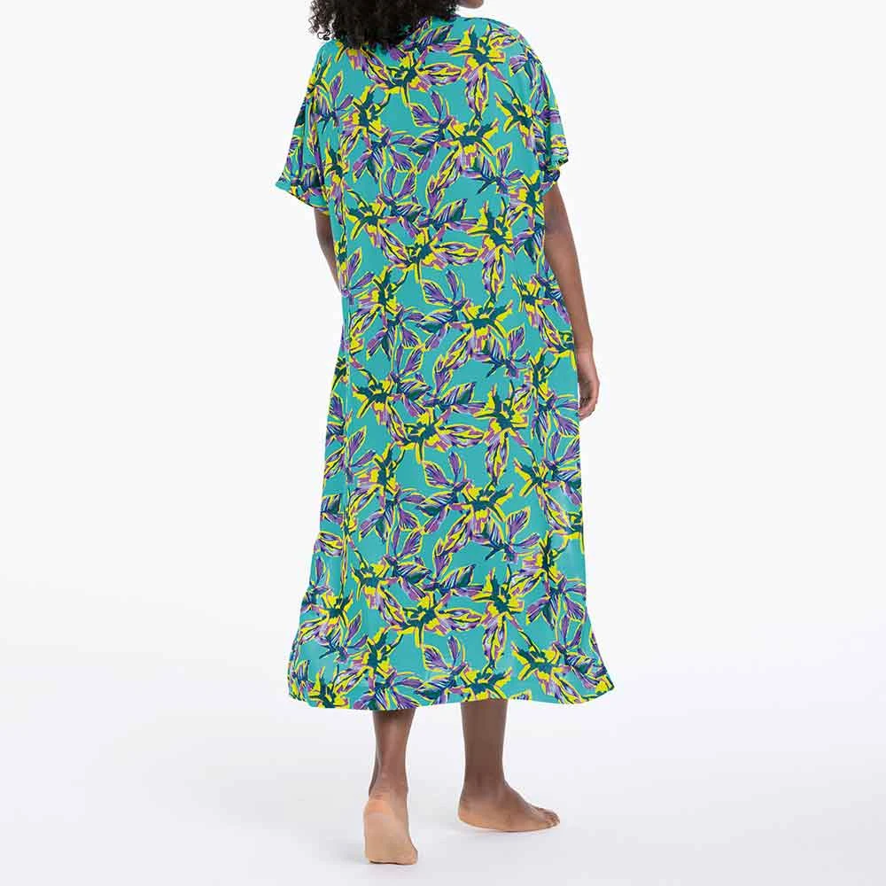 Orchid Dream Santa Lucia Beach Tunic by Anita Rosa Faia. Loos fit ladies beach dress made from lightweight fabric in a trendy botanical design. With split sides for comfort of wearing and buttoned top for a trendy look. This is a loos fit dress sold in sizes 10/12-will fit up to dress size 14, 16/18 – will fit up to dress size 20