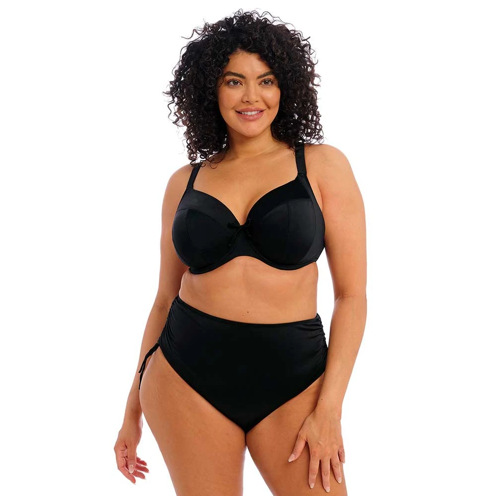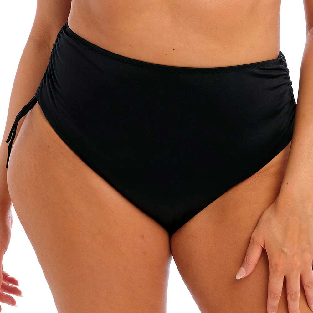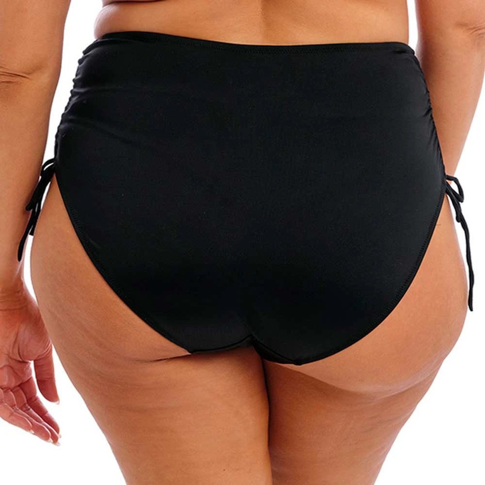 Plain Sailing High Waist Adjustable Sides Bikini Briefs by Elomi Swim. Fully lined full coverage ladies bikini briefs made from lightweight fabric for quick drying. With adjustable sides for a choice of coverage and ruching effect for a slimmer look.