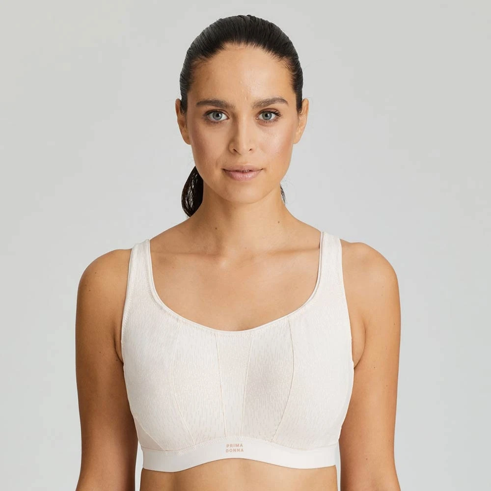 The Gym Sport bra by PrimaDonna. Full coverage high impact sports bra with underwired fully lined cups for best support and no bounce for fuller bust. With multiway straps which can be worn over the shoulders or cross back. Perfect for running, gym activities and other exercise.