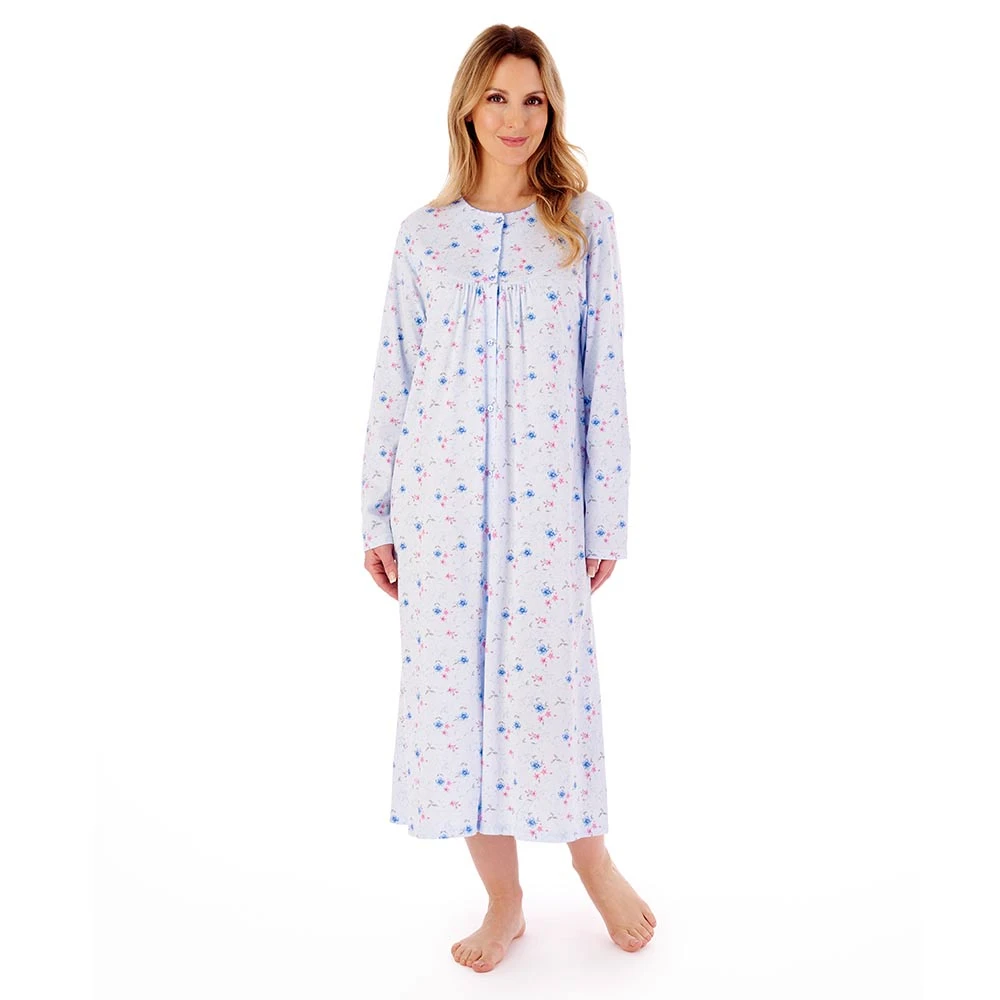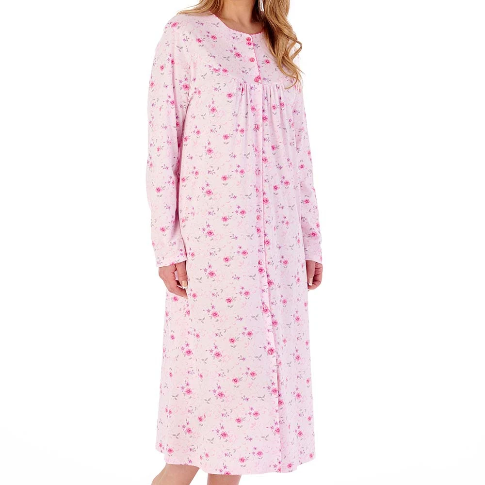 Spring Garden Long Sleeve Button Through Cotton 46 inch Nightdress by Slenderella