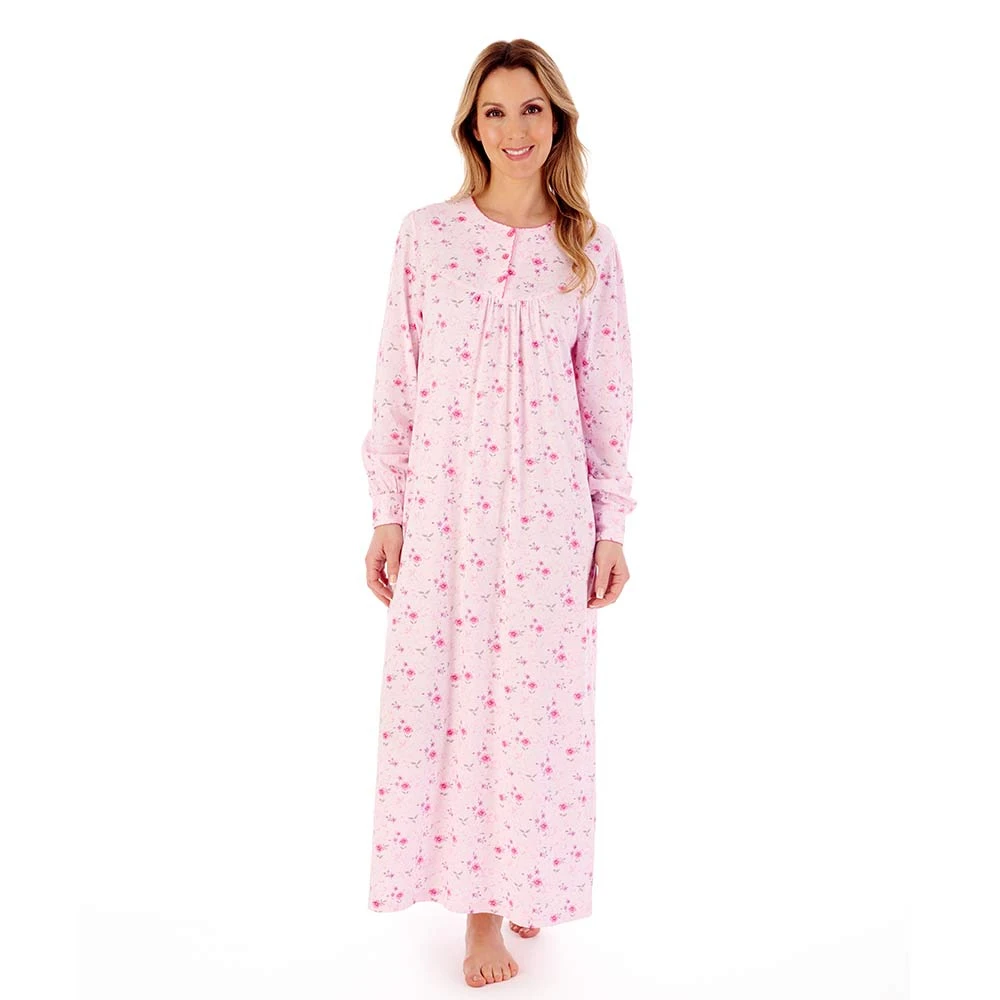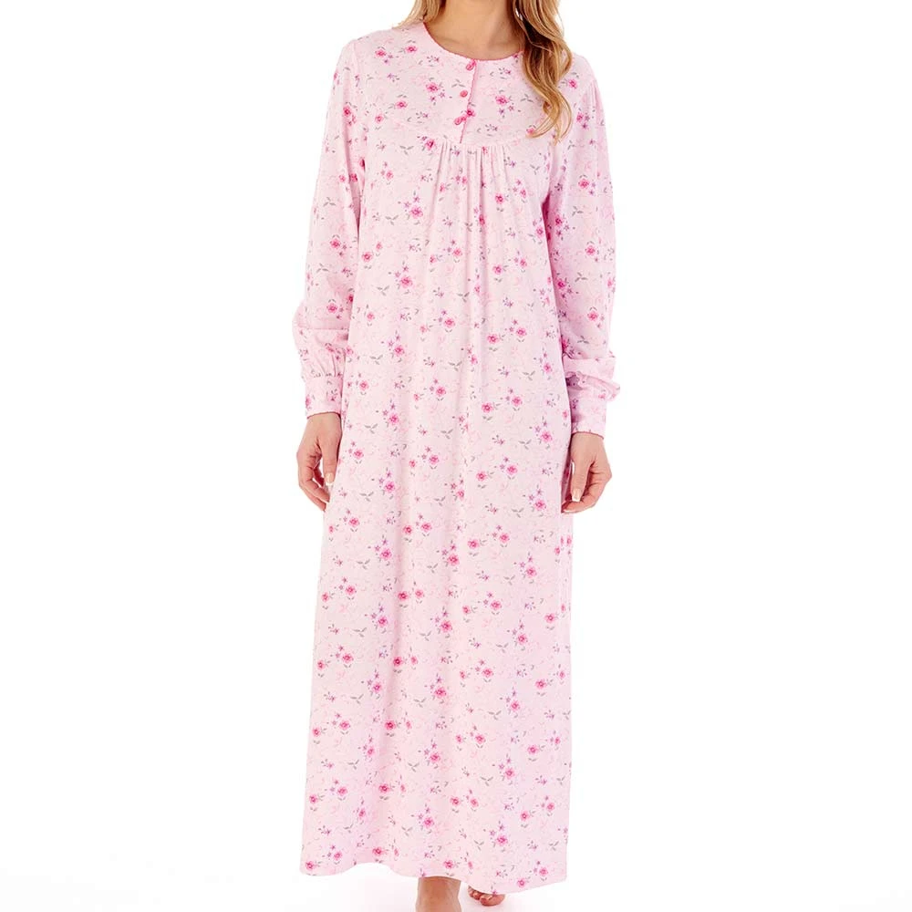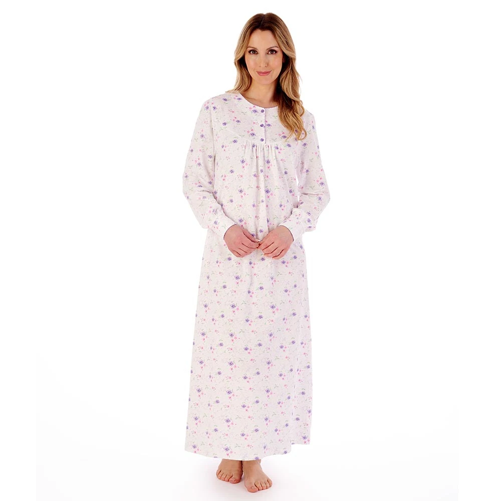 Spring Garden Long Sleeve Cotton Longer Length 50 inch Nightdress by Slenderella