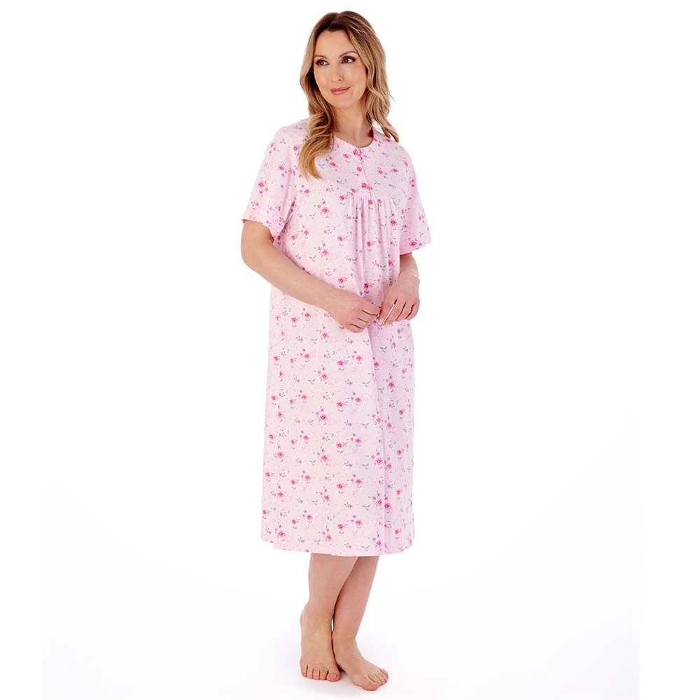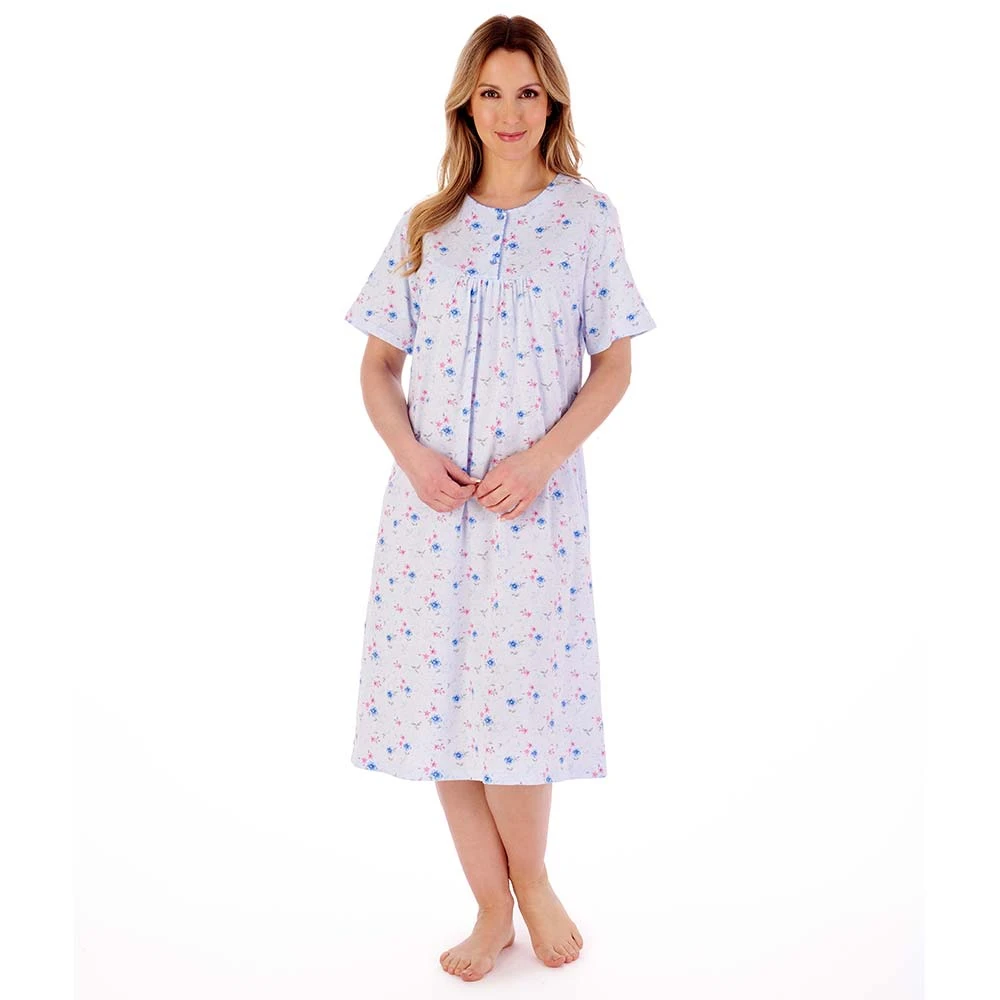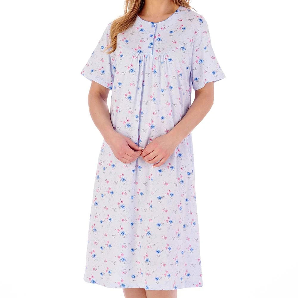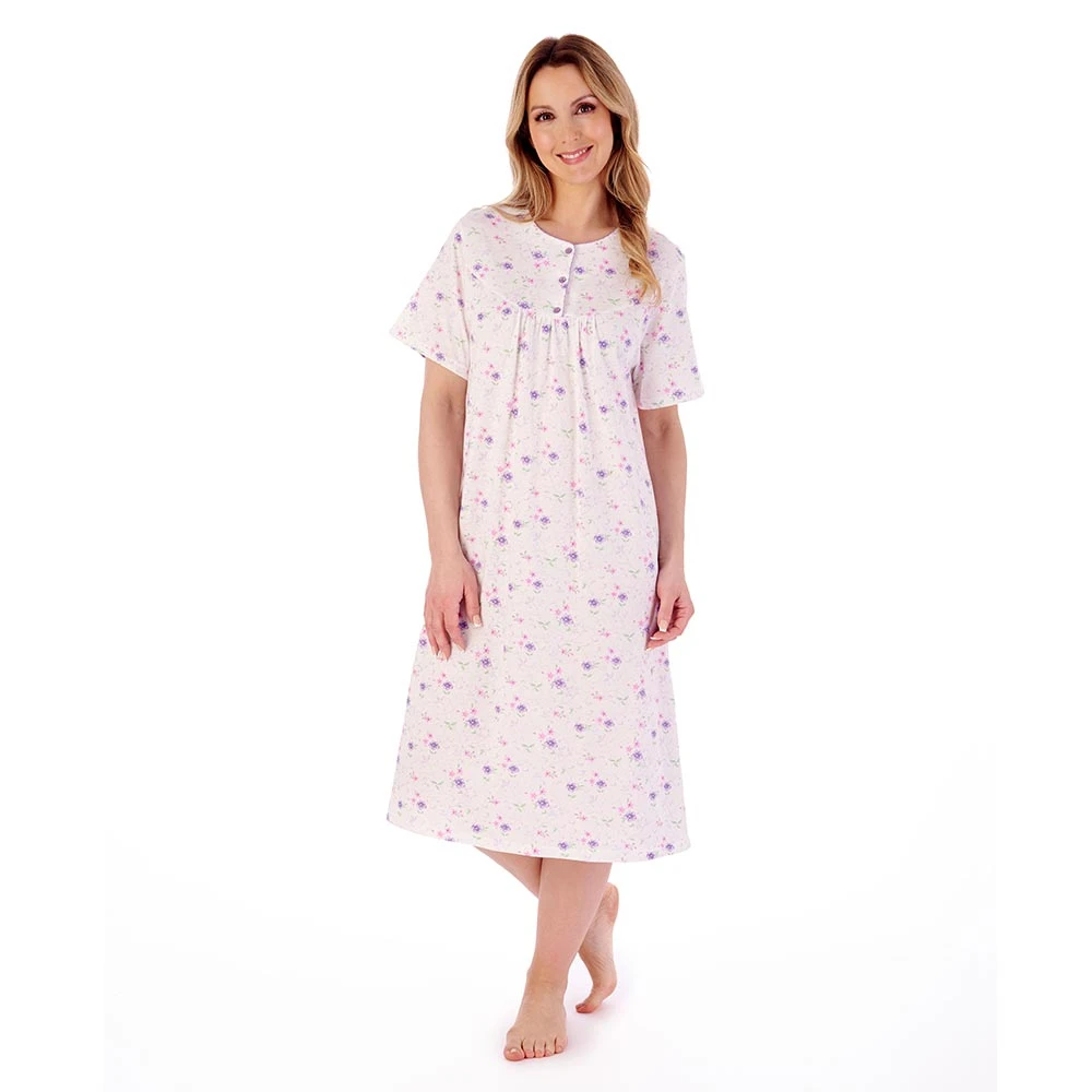 Spring Garden Short Sleeve Buttoned Top Cotton 42 inch Nightdress by Slenderella