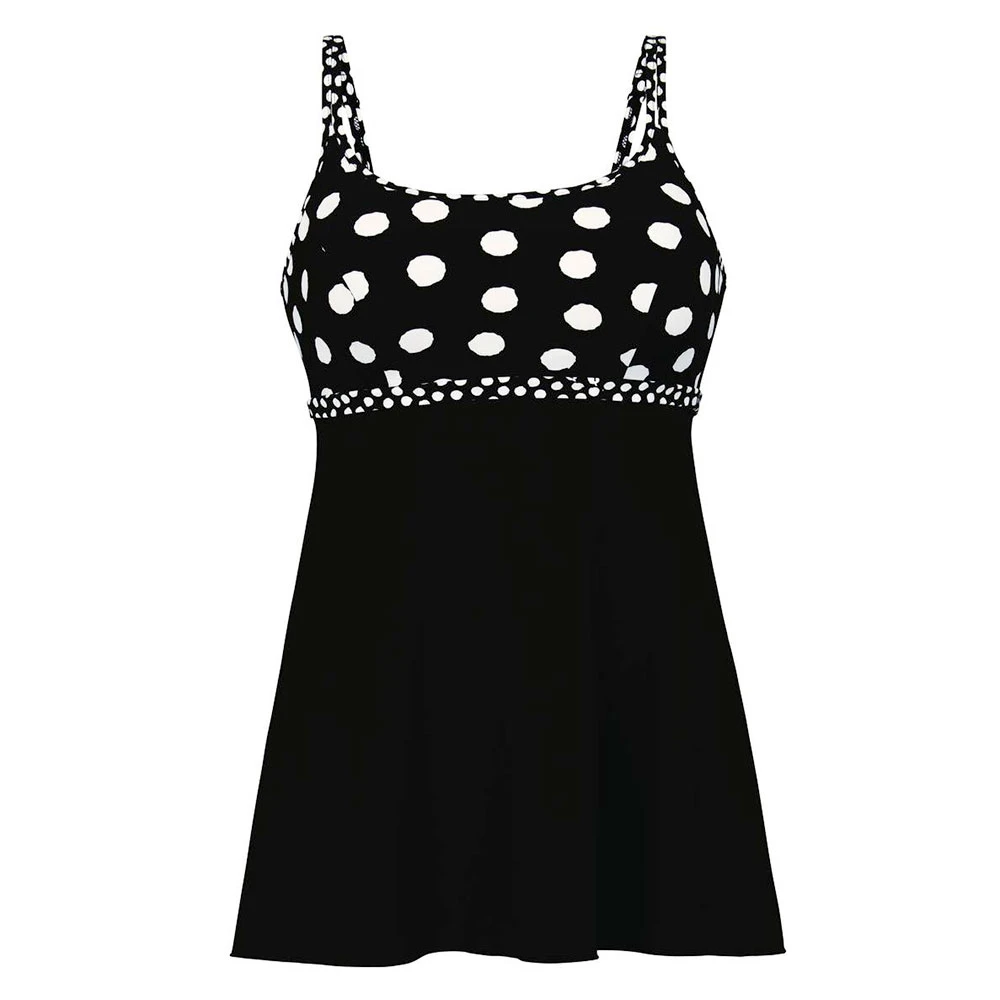 Summer Dot Jena Soft Cup Tankini Top by Anita Rosa Faia. Longer length tankini top for hip coverage. With lined soft cups supported by underbust elastic. The soft, breathable lining will support prosthetics so is perfect for post mastectomy.
