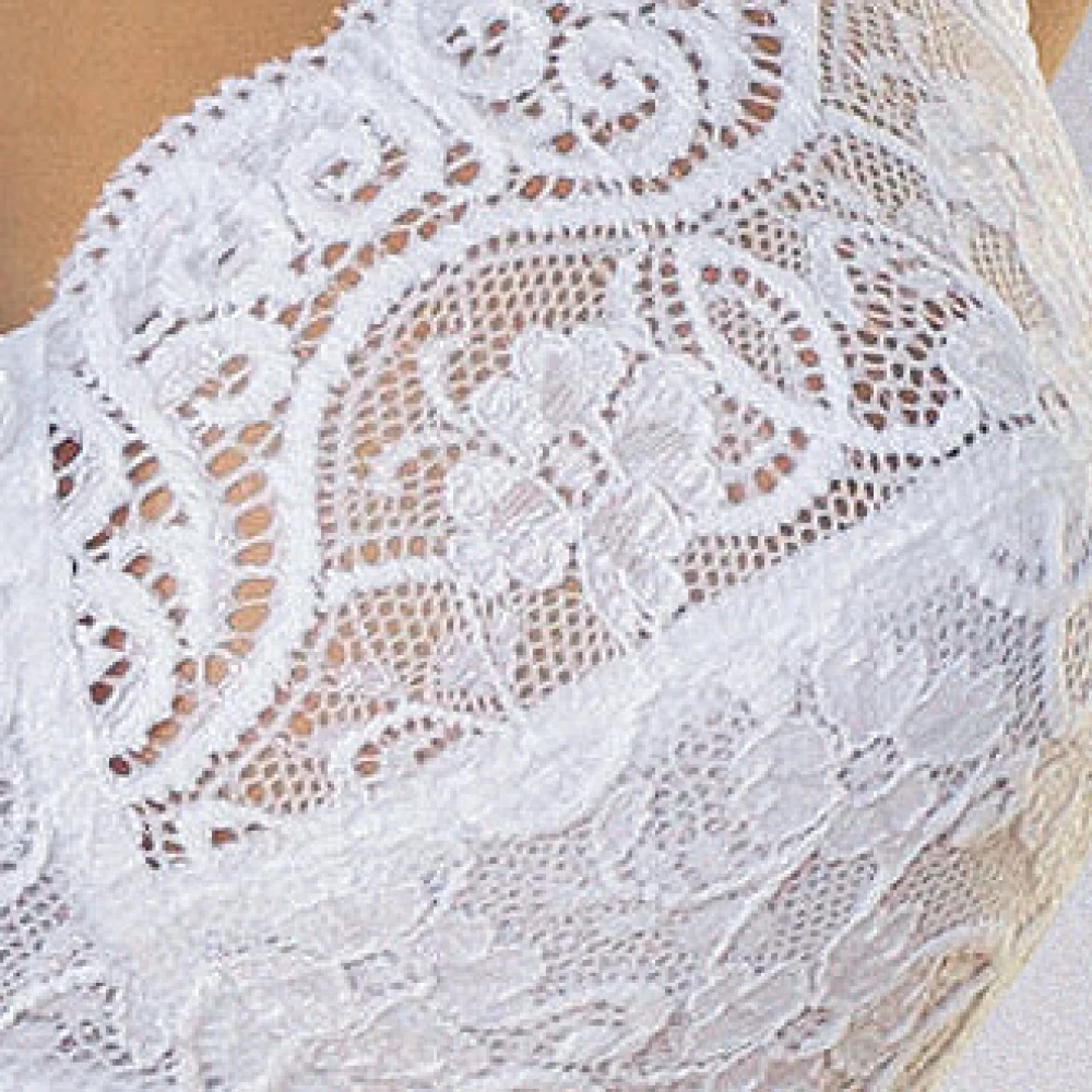 Non wired, Three-quarter cup, Two-sectioned cups, Bottom half of cup lined, Adjustable straps, Elastic lace combined with comfortable elastic fabric, for an optimal fit and superb comfort even in larger cup sizes
