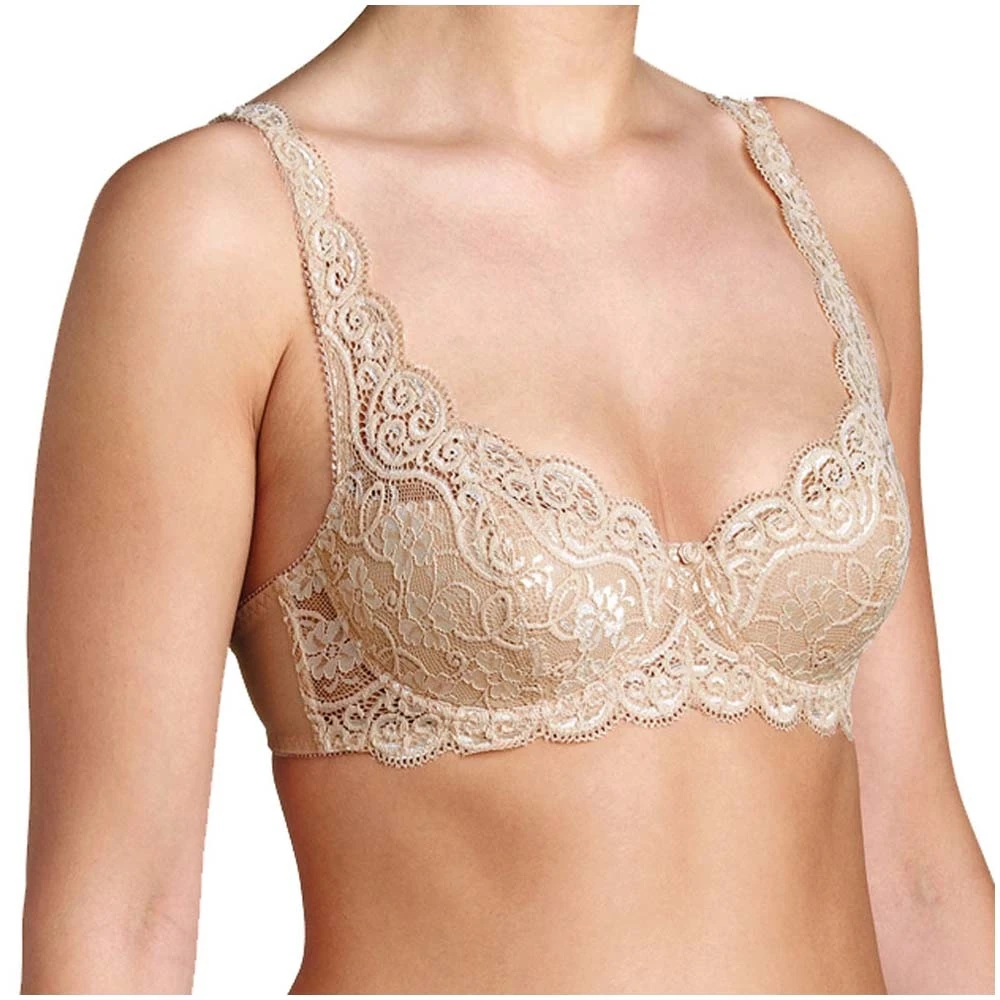 Amourette 300 by Triumph – a glamorous all over lace bra with beautiful scalloped edging. This lightly padded, balconette style gives a great cleavage effect. Perfect for ladies searching for pretty everyday bras.