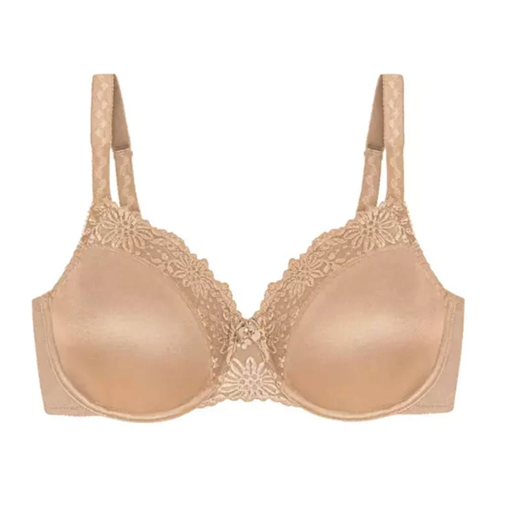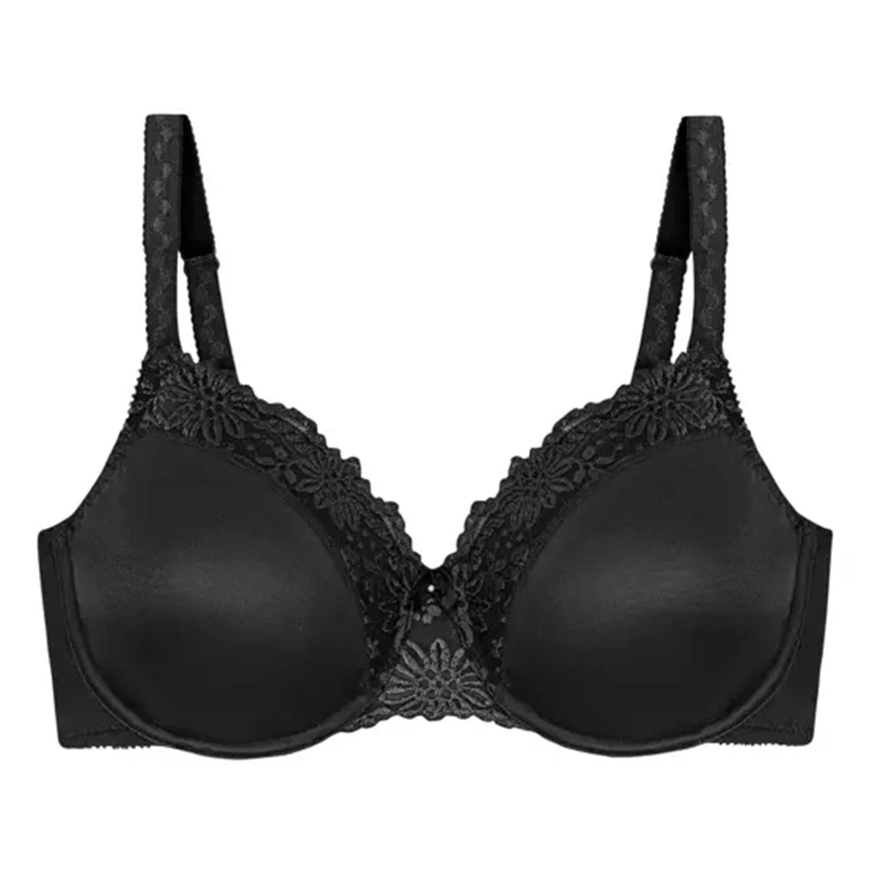 Ladyform Soft Underwired Minimiser Bra by Triumph Lingerie. Seamless, non padded bra which will reduce your bust size by one cup. With bandless frame for excellent comfort all day round specially for shorter torso ladies. With a beautiful lace detailing on the top cup for a feminine look.
